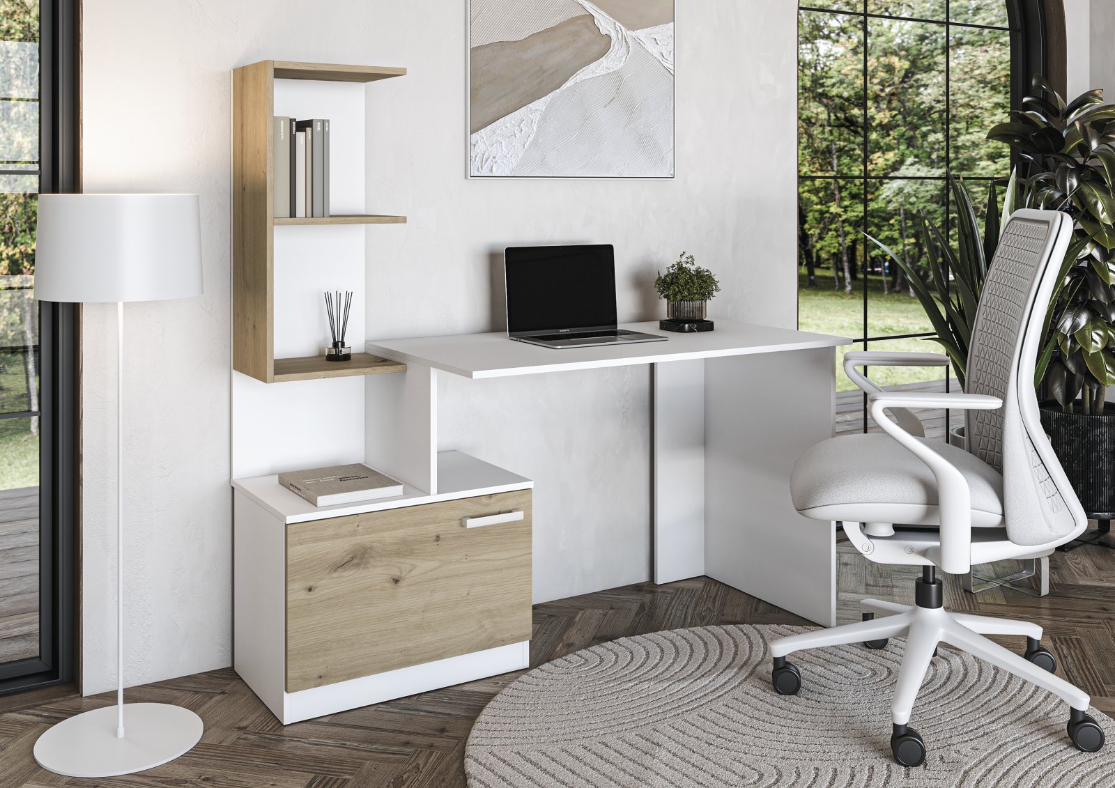 MISO biurko, biały / dąb artisan