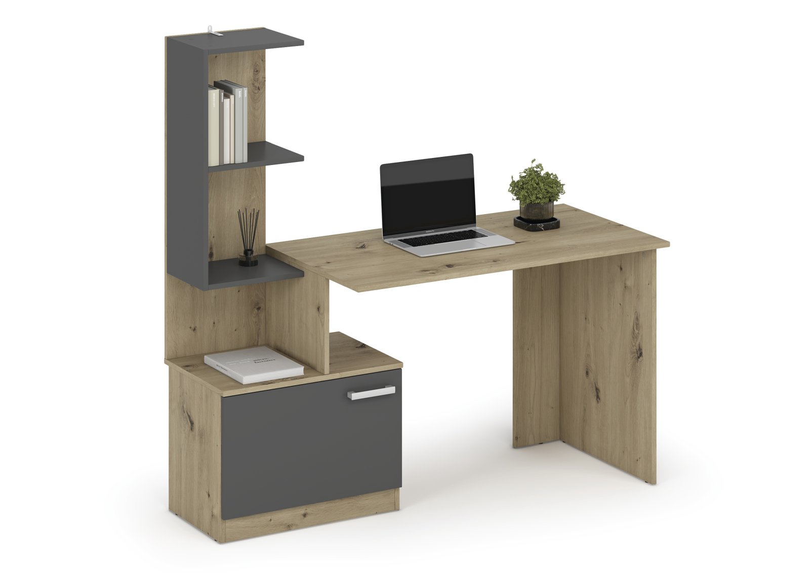 wymiary: 144/60/142 cm, materiał: płyta meblowa laminowana, kolory: grafitowy – dąb artisan