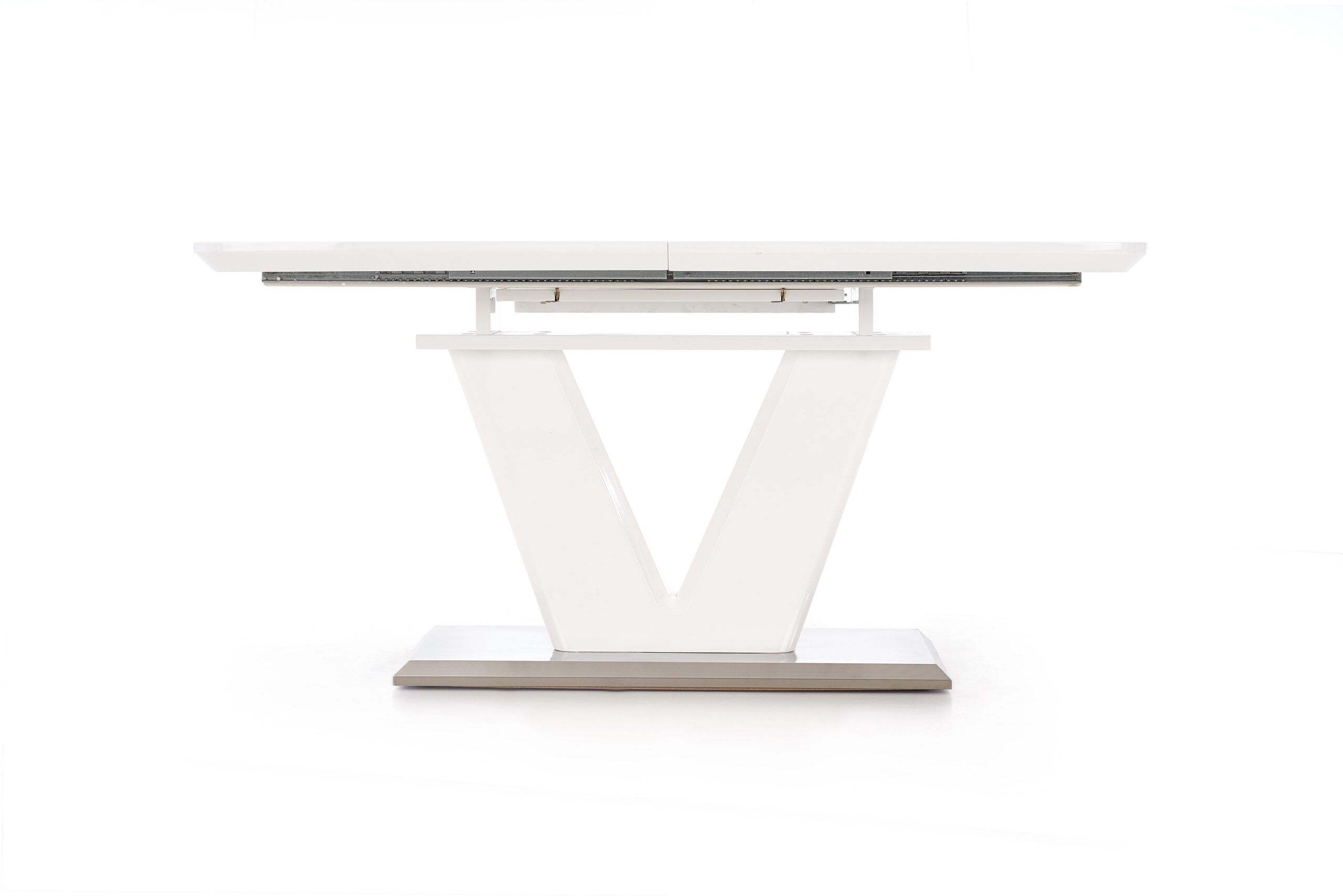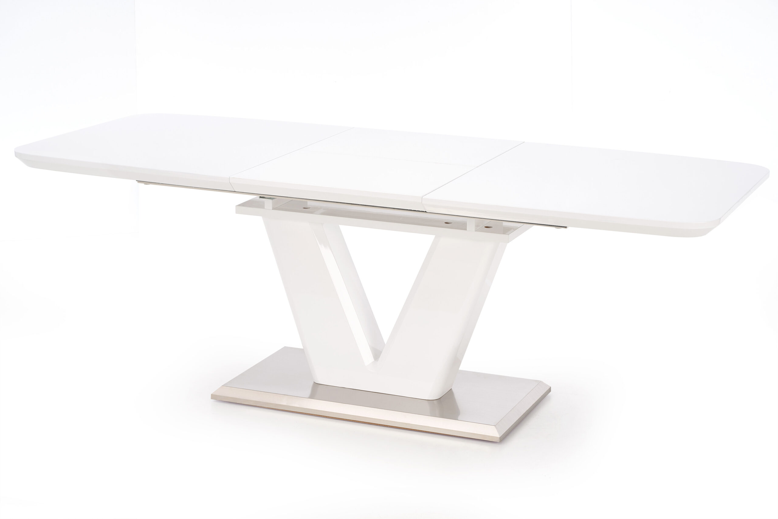 stół rozkładany, wymiary: 160-220/90/76 cm, materiał: MDF lakierowany / stal nierdzewna, kolor: biały