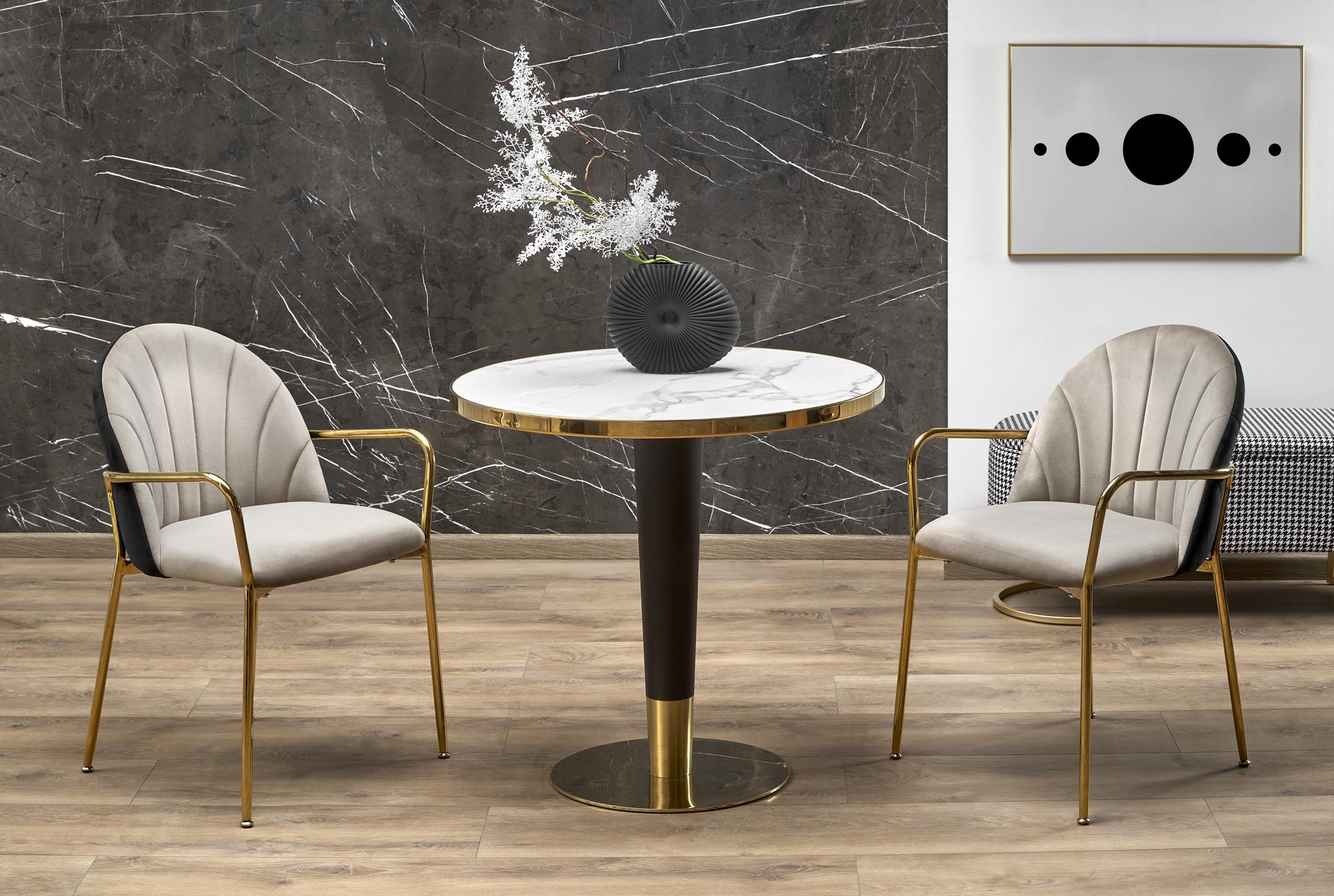MORATA stół okrągły, biały marmur / czarny / złoty