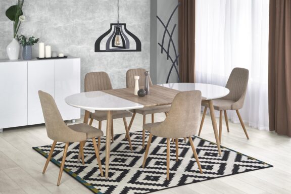 wymiary: fi120/76 cm, materiał: MDF laminowany / stal malowany proszkowo, kolor: blat – dąb złoty, nogi – czarny