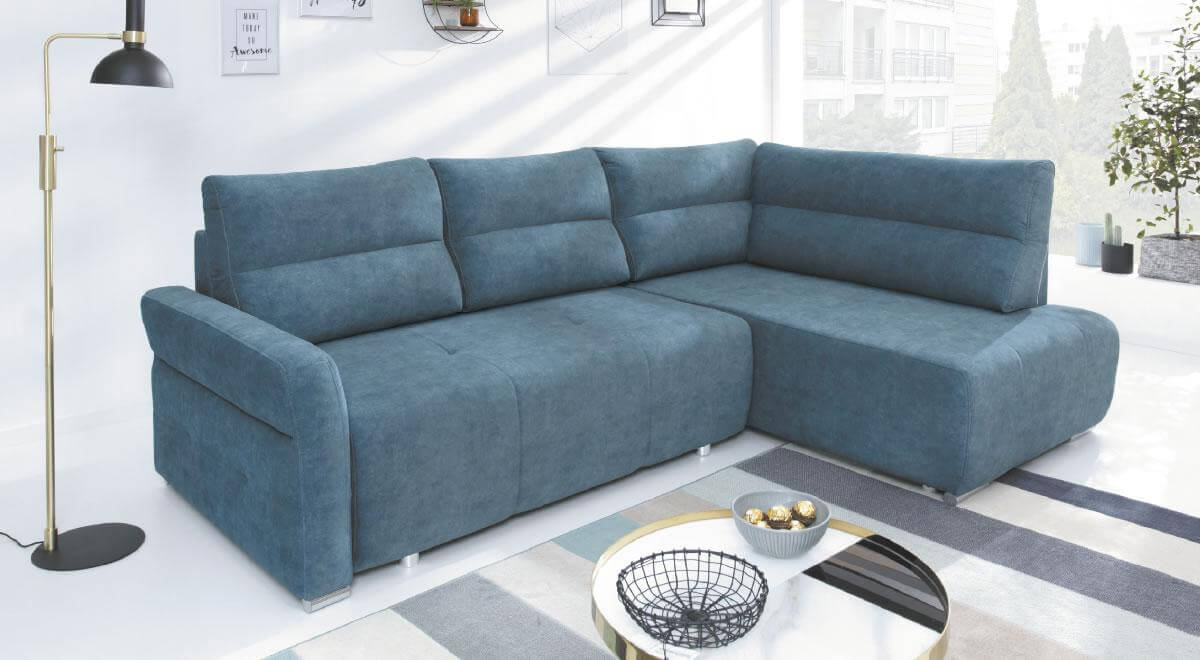 Narożnik wyposażony jest w mechanizm rozkładania Puma, który umożliwia szybkie i wygodne rozłożenie powierzchni spania. Dodatkowo mebel posiada praktyczny pojemnik na pościel.