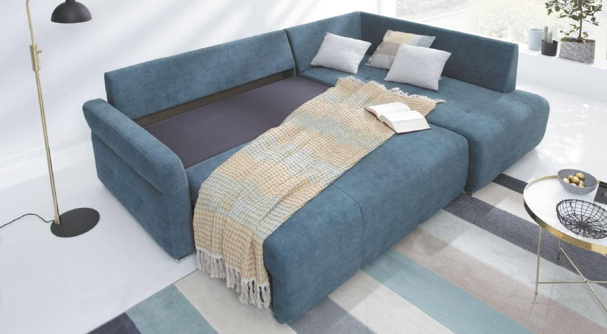 Narożnik ISLAND – nowoczesny narożnik z funkcją spania | mechanizm Puma | pojemnik na pościel