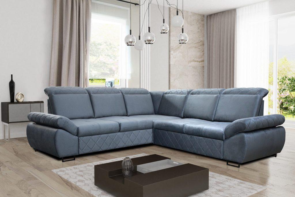 DODATKOWE INFORMACJE: metalowe nóżki, pojemnik na pościel, funkcja spania, regulowane zagłowia, regulowane oparcia