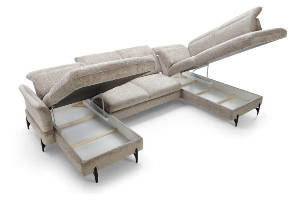 Narożnik SIENNA I – duży narożnik w kształcie U | funkcja spania | 2 pojemniki na pościel