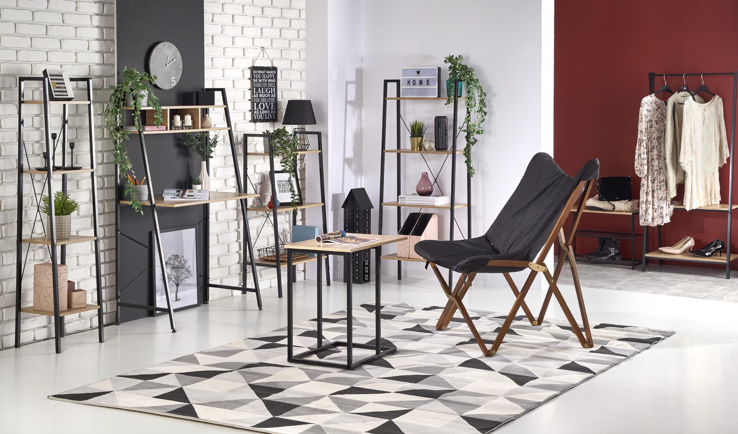 wymiary: 60/32/148 cm, materiał: płyta meblowa laminowana / stal malowana proszkowo, kolor: czarny – dąb sonoma