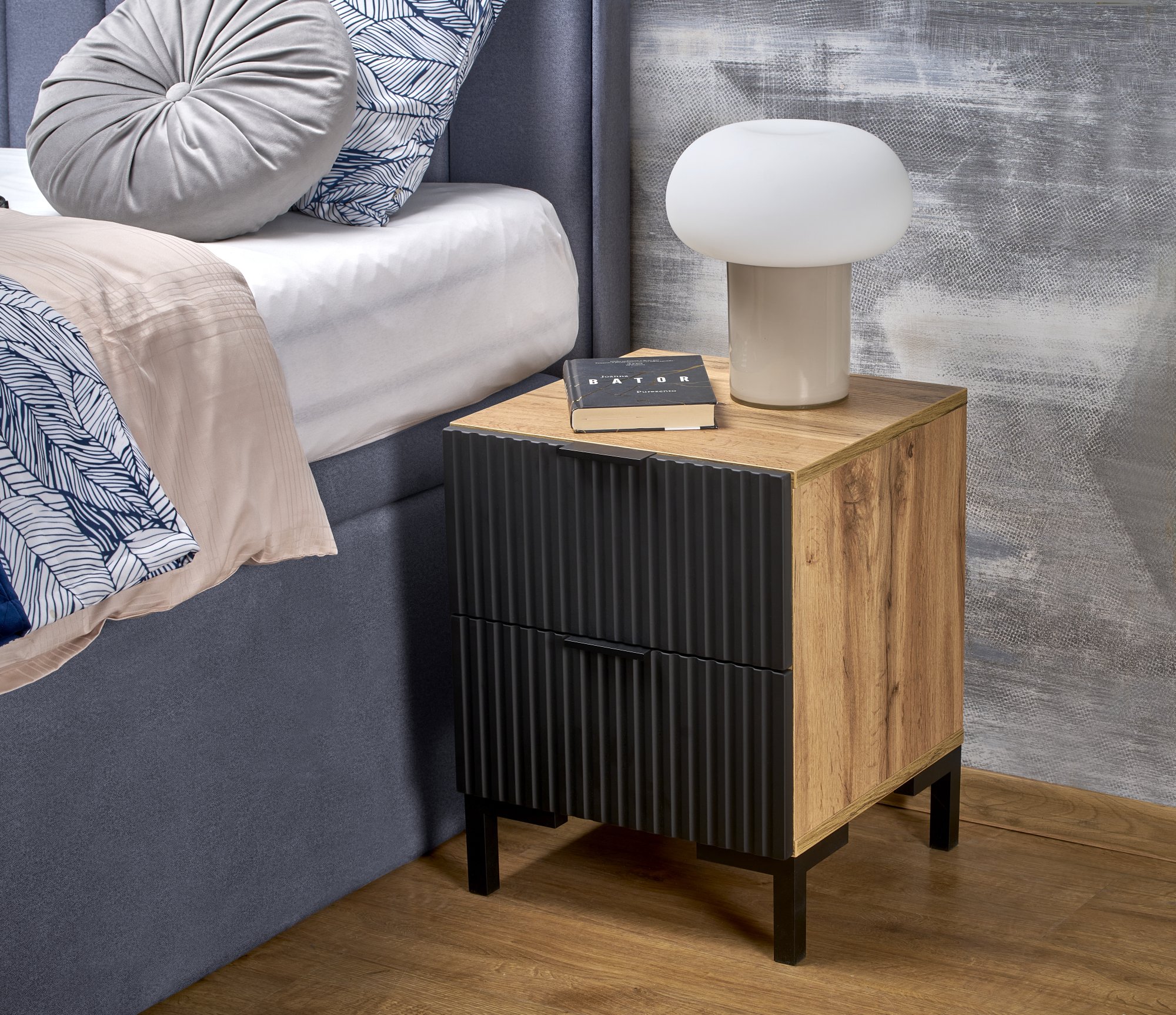 wymiary: 40/40/52 cm; materiał: płyta meblowa laminowana / MDF okleinowany / polipropylen, kolor: dąb craft / czarny