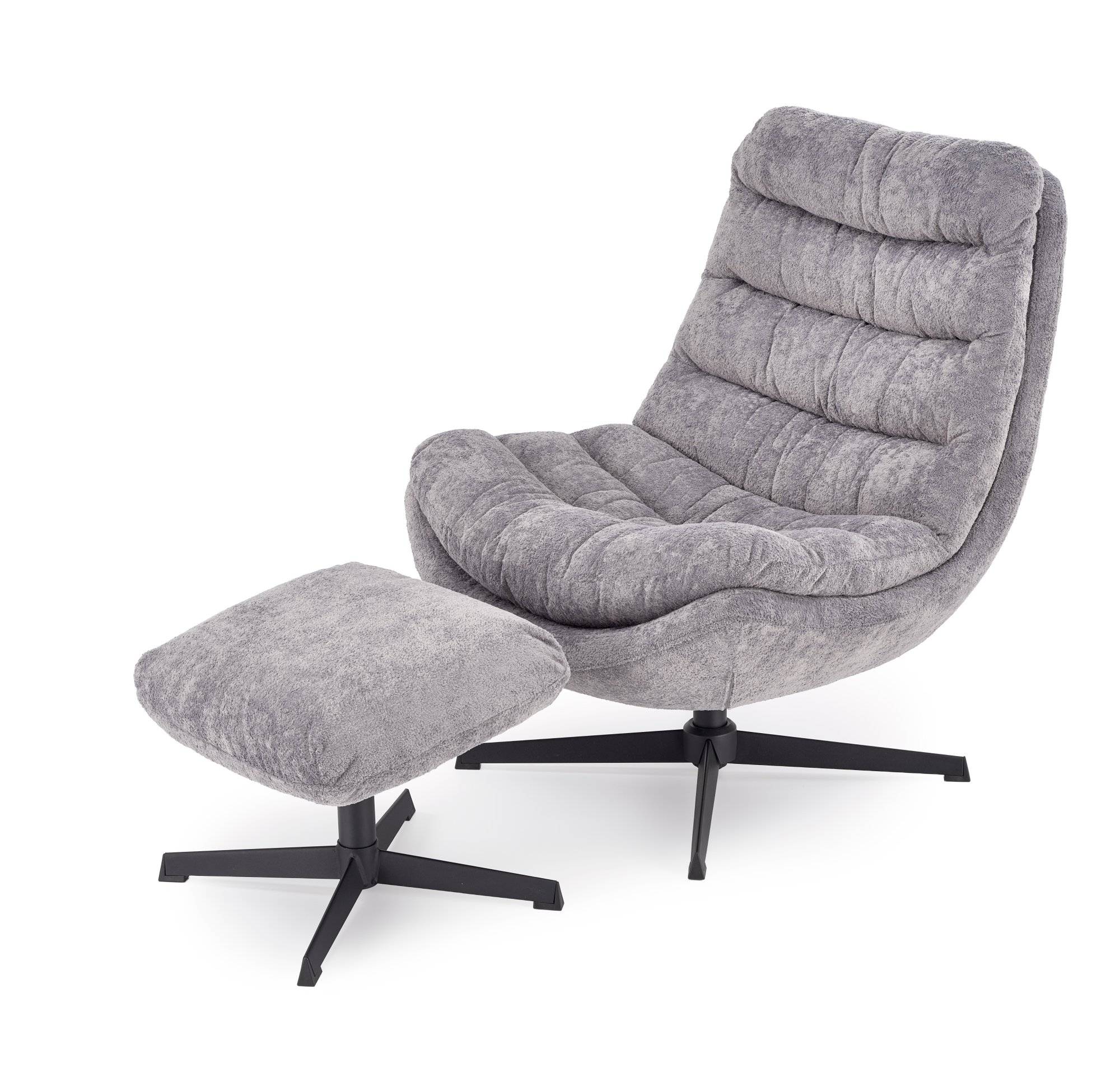wymiary: 75/88/94/44 cm oraz 50/45/40 cm, fotel z podnóżkiem / funkcja obracania, materiał: tkanina MONTE / stal malowana proszkowo, kolor: popielaty #90