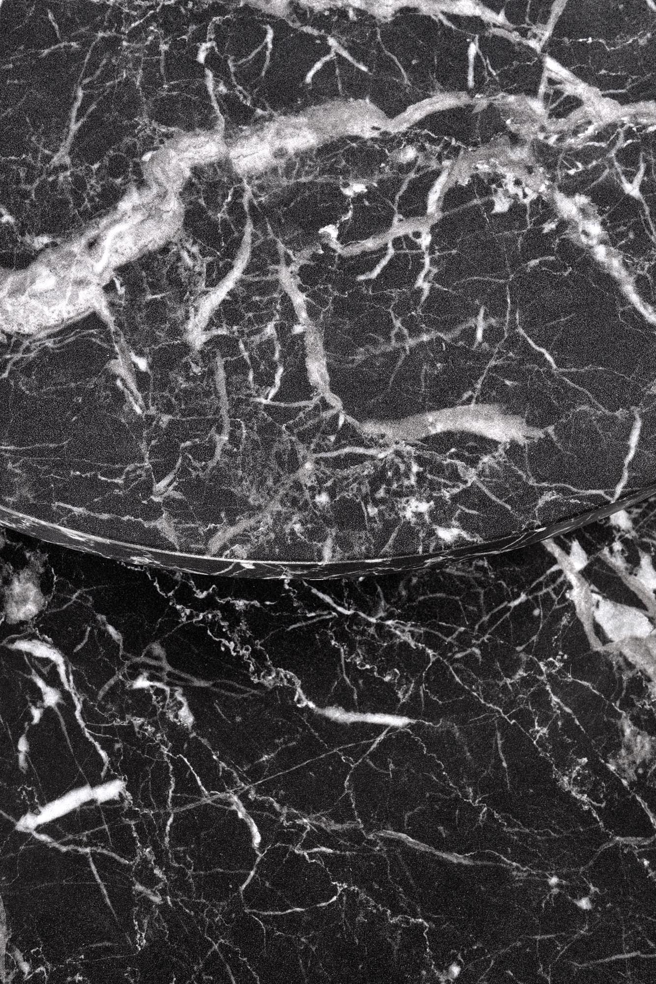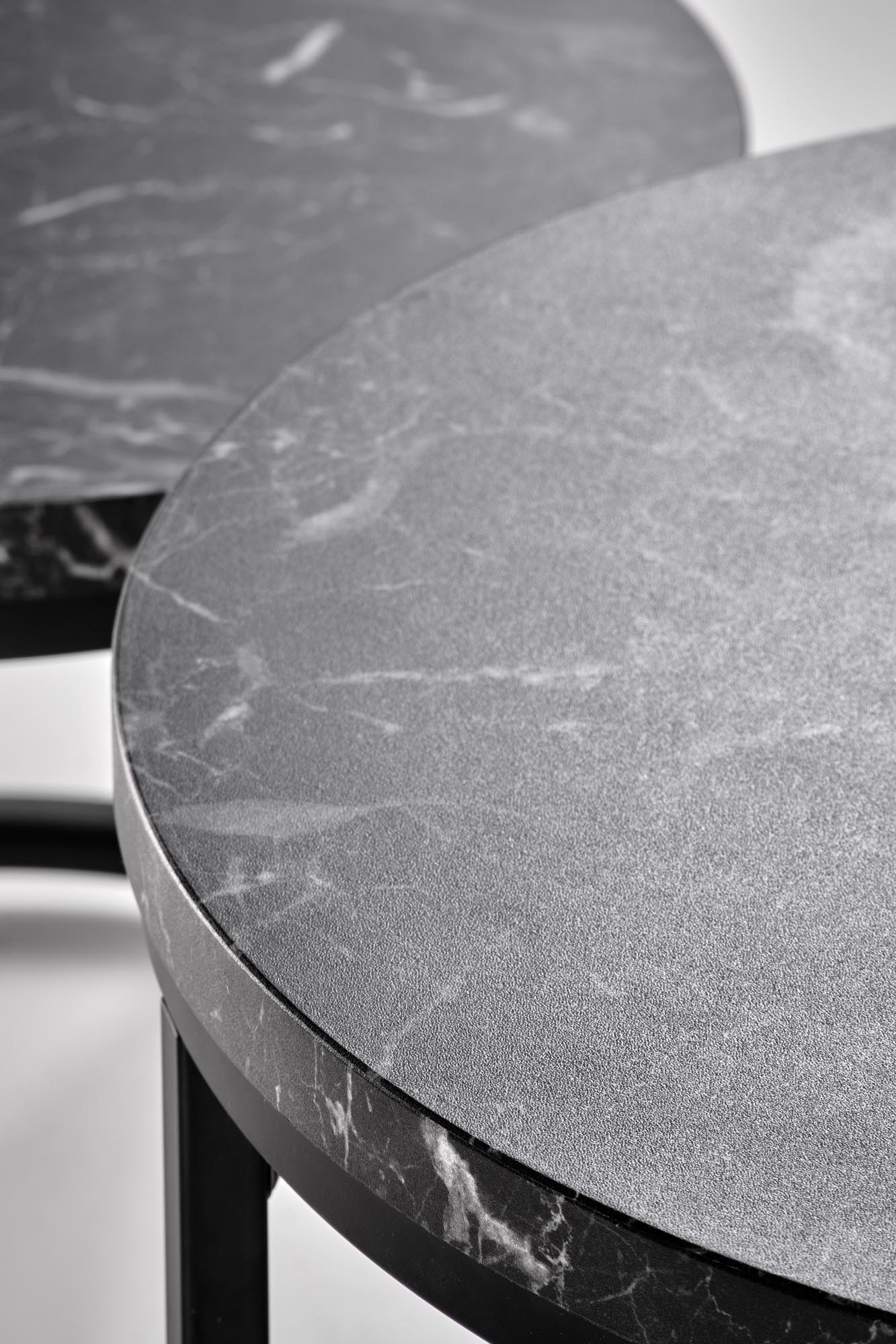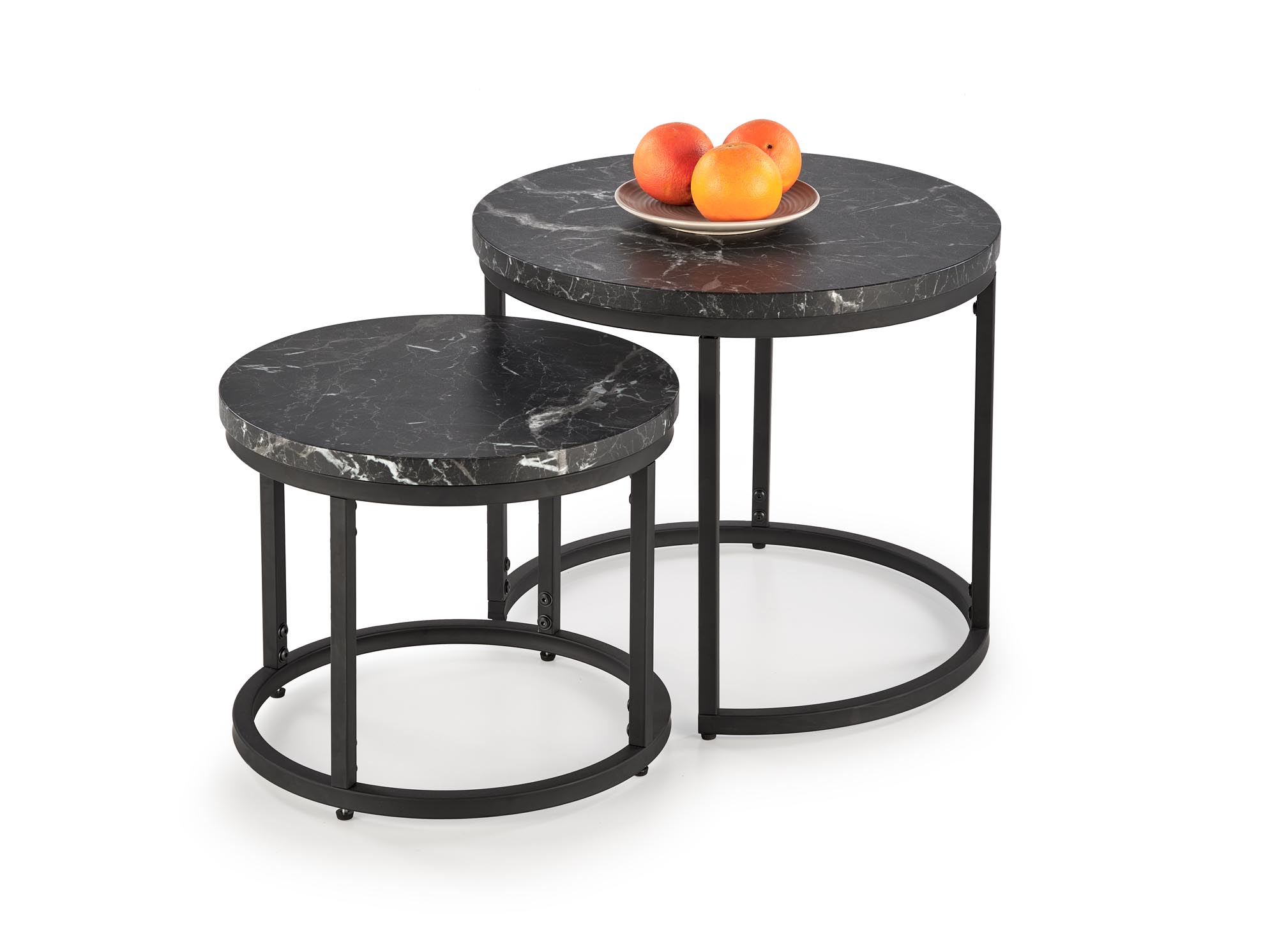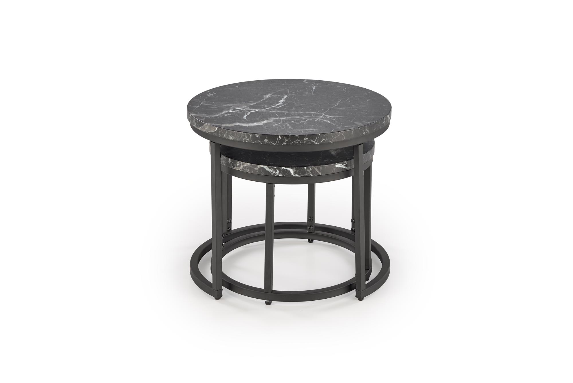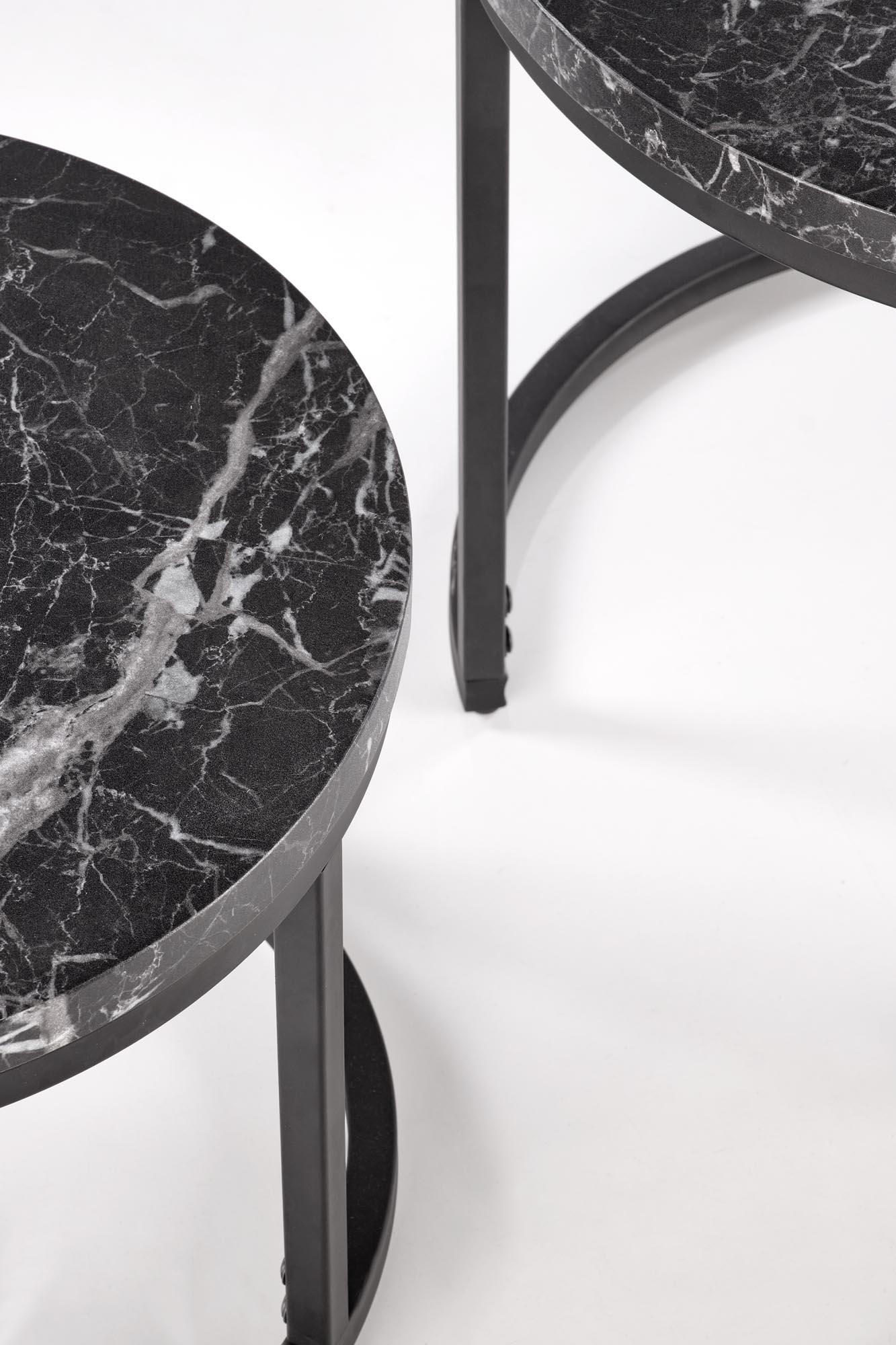 wymiary: duża – fi53/45 cm, mała – fi43/35 cm, zestaw 2 ław, materiał: MDF okleinowany / stal malowana proszkowo, kolor: czarny marmur – czarny