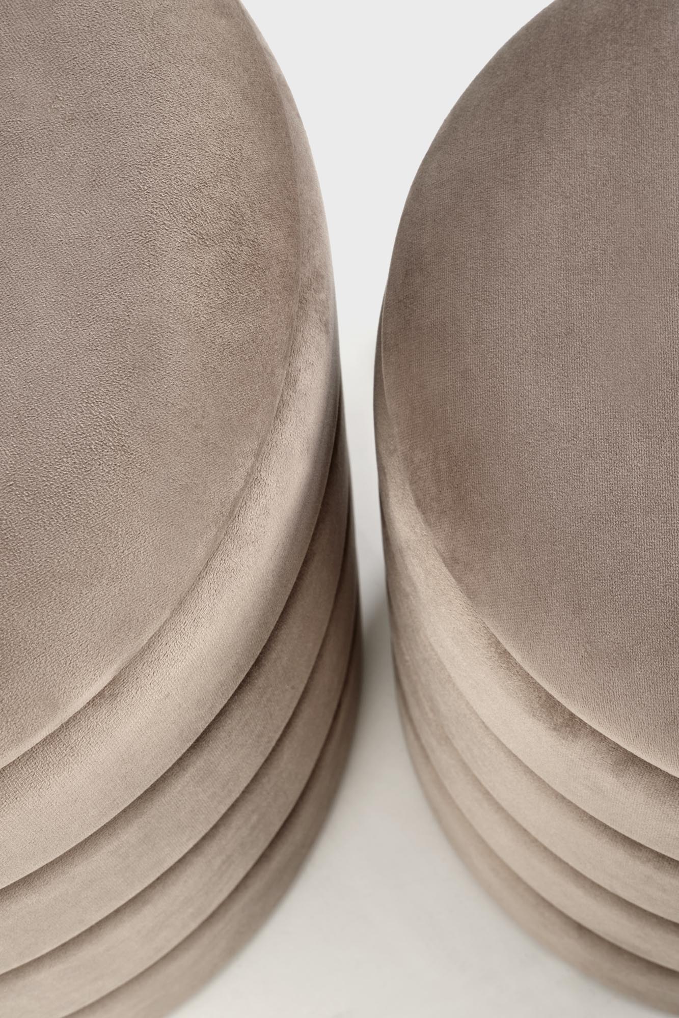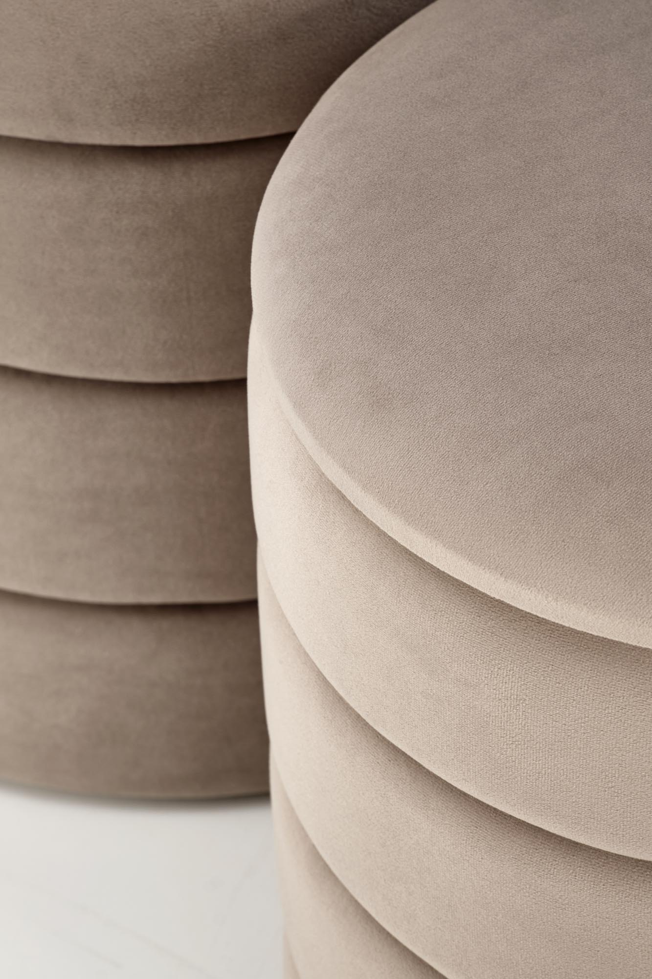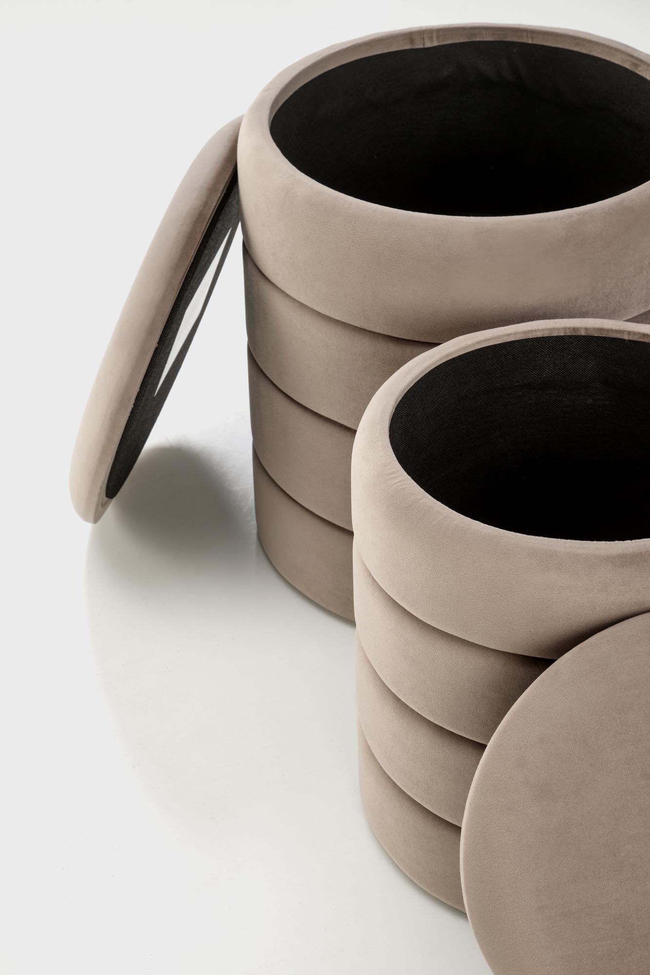 wymiary: 40/44 cm oraz 33/39 cm; zestaw 2 puf z funkcją pojemnika, materiał: tkanina – velvet, kolor beżowy