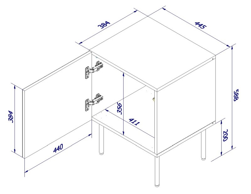 Nóżki: metalowe, czarne o wysokości 20 cm