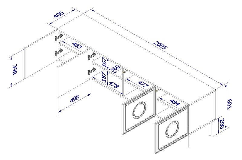 PALAZZO szafka RTV 200 (4D) czarny mat/ dąb craft