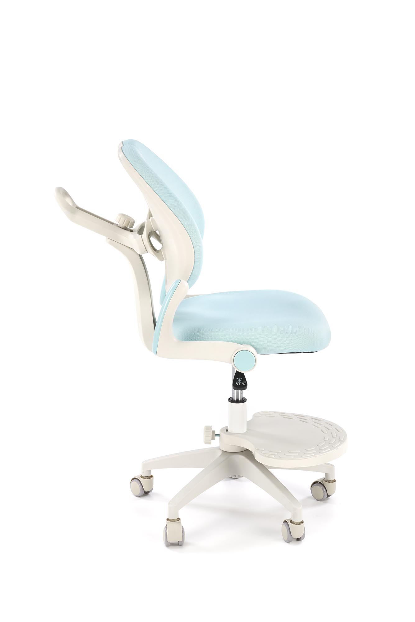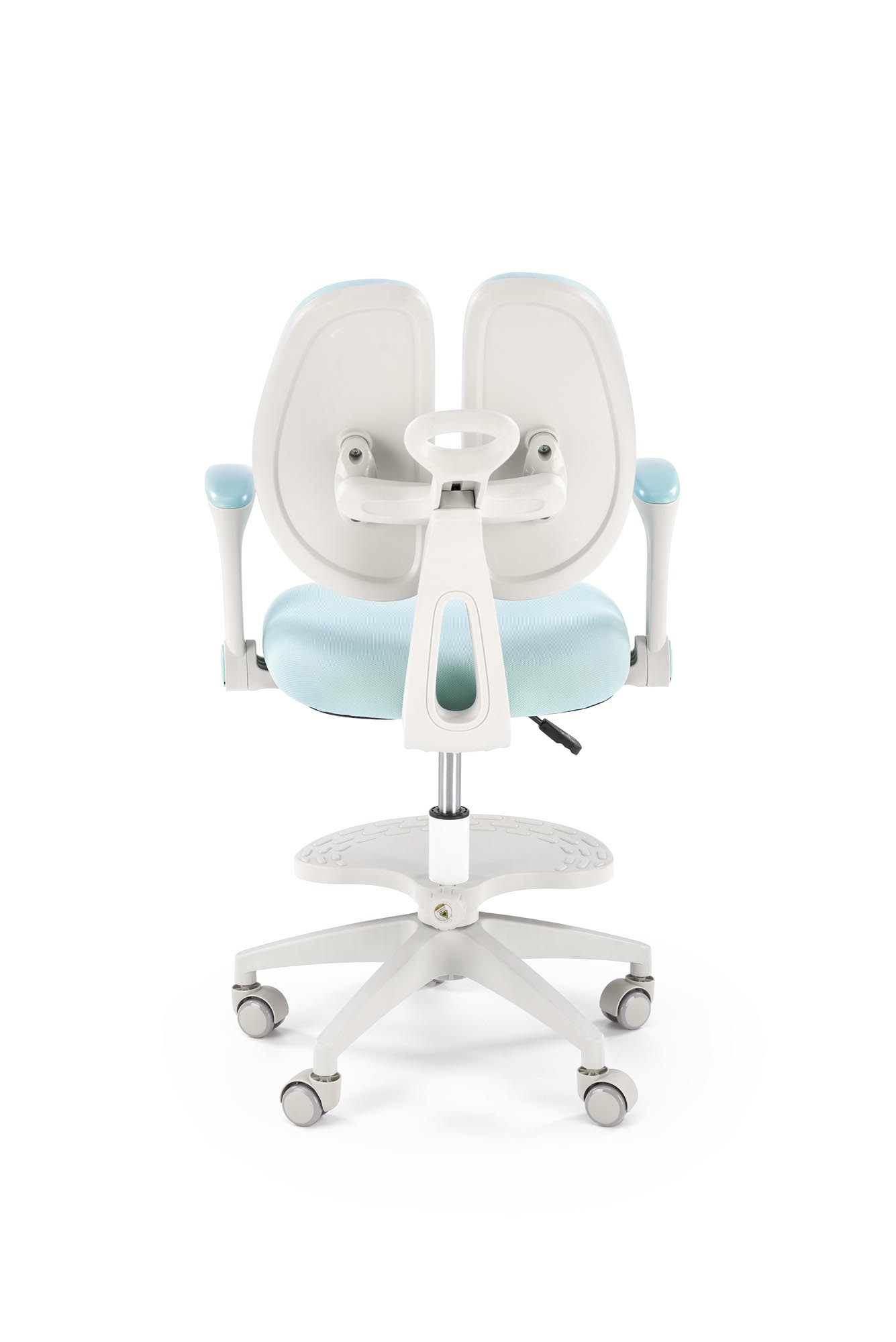 wymiary: 58/77/88-100/47-59 cm; mechanizm podstawowy / regulowana wysokość oparcia / regulowana głebokość oparcia / regulowany podnóżek, tkanina, kolor: j.niebieski