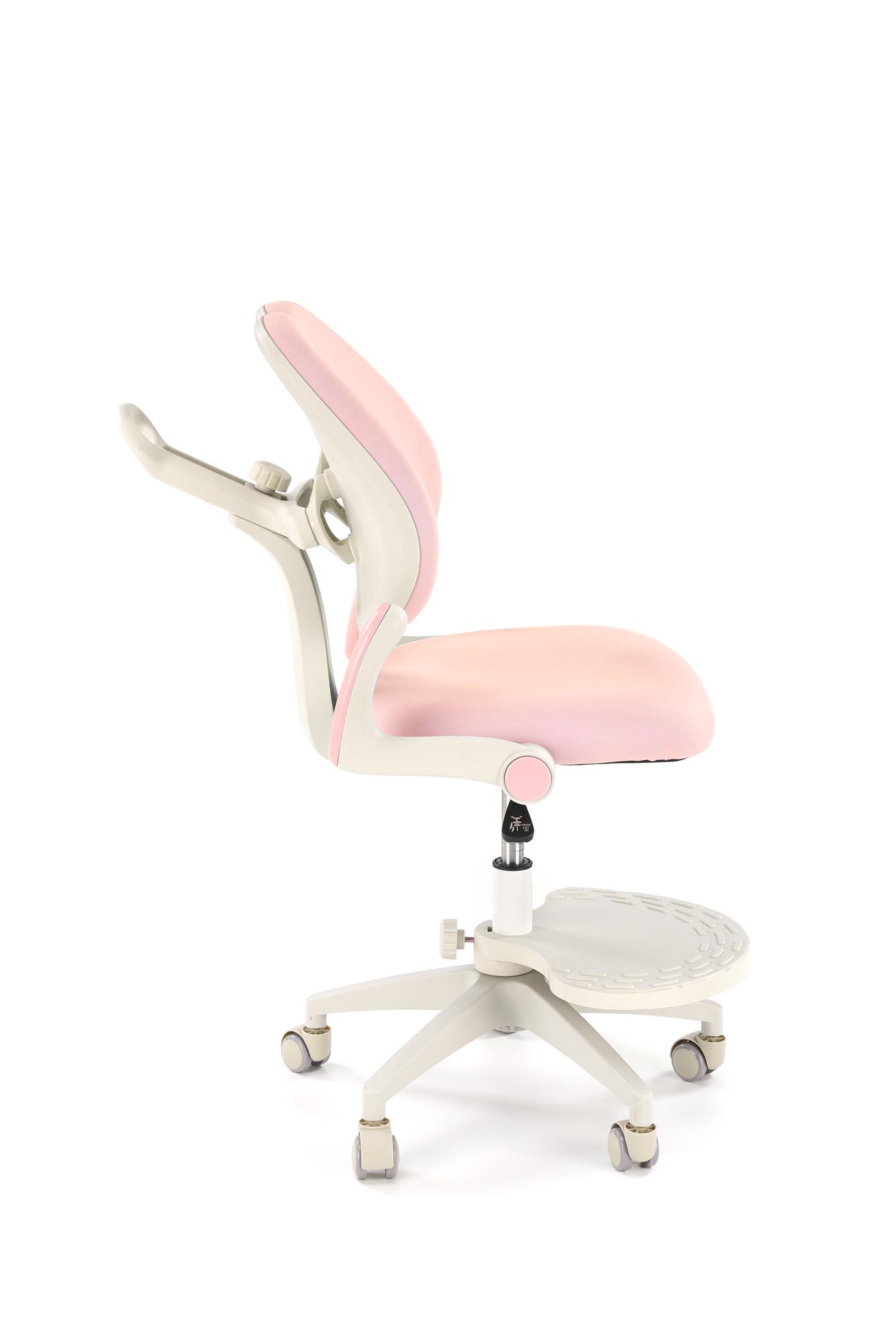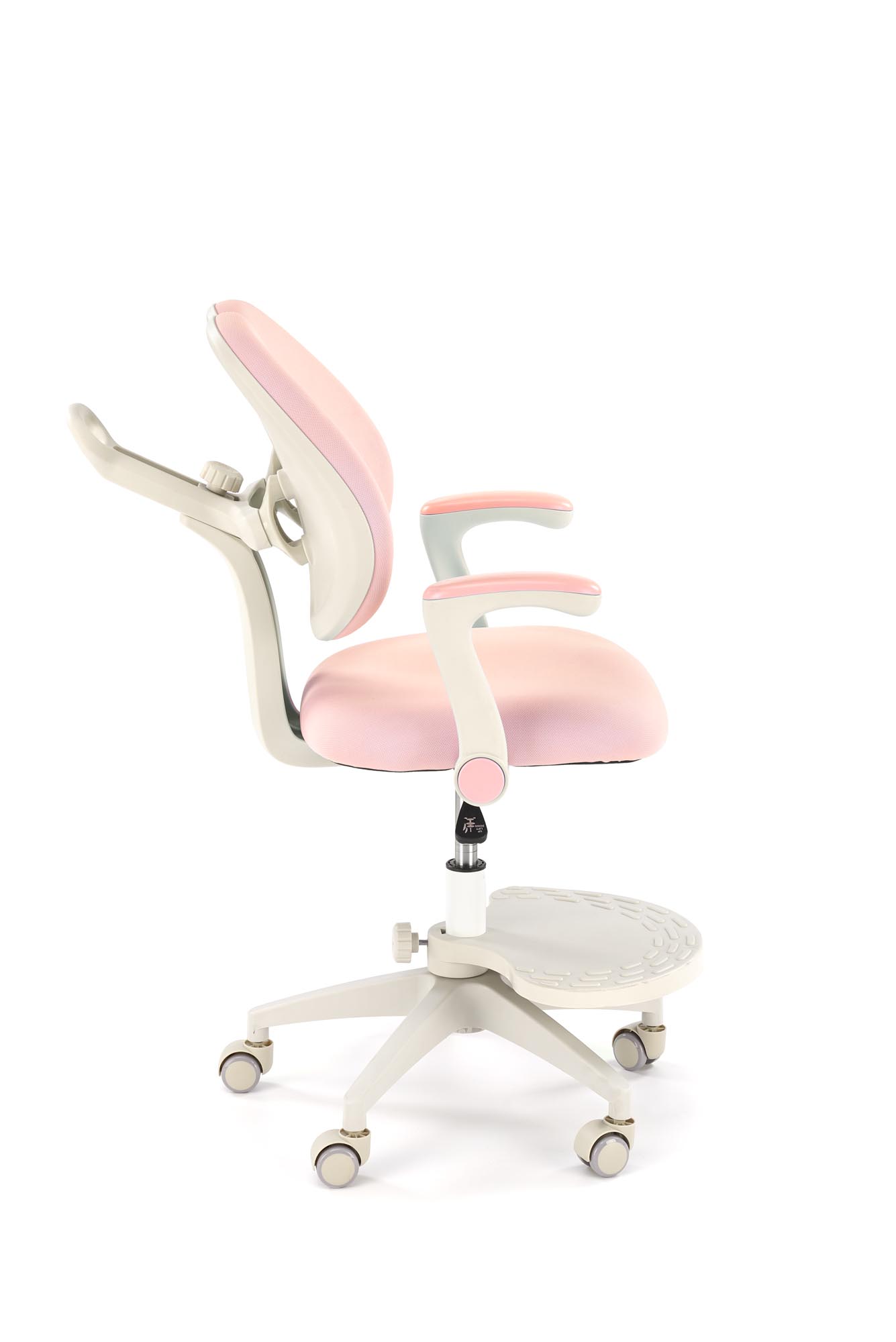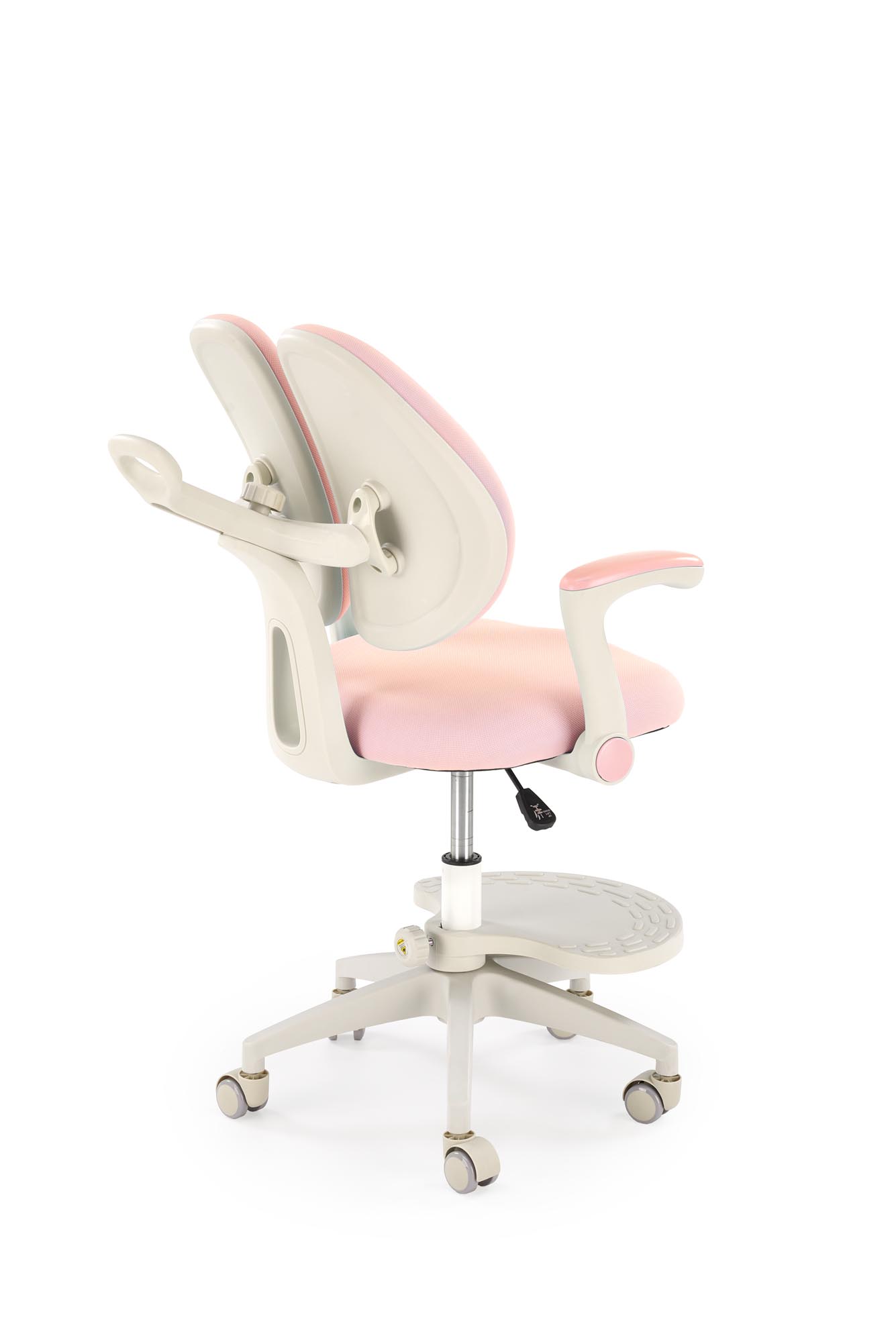 wymiary: 58/77/88-100/47-59 cm; mechanizm podstawowy / regulowana wysokość oparcia / regulowana głebokość oparcia / regulowany podnóżek, tkanina, kolor: różowy