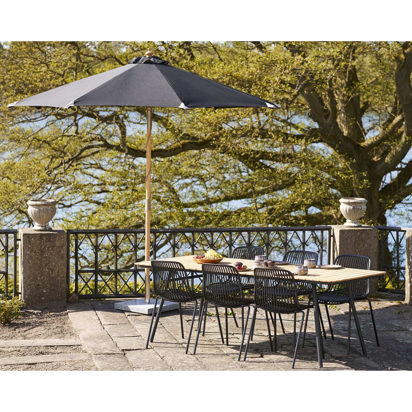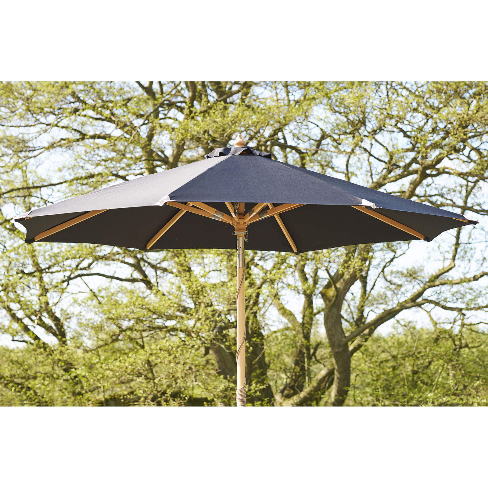 Parasol z funkcją pochylenia, drewniany słupek, czarny, ?300 cm, stal, poliester, drewno