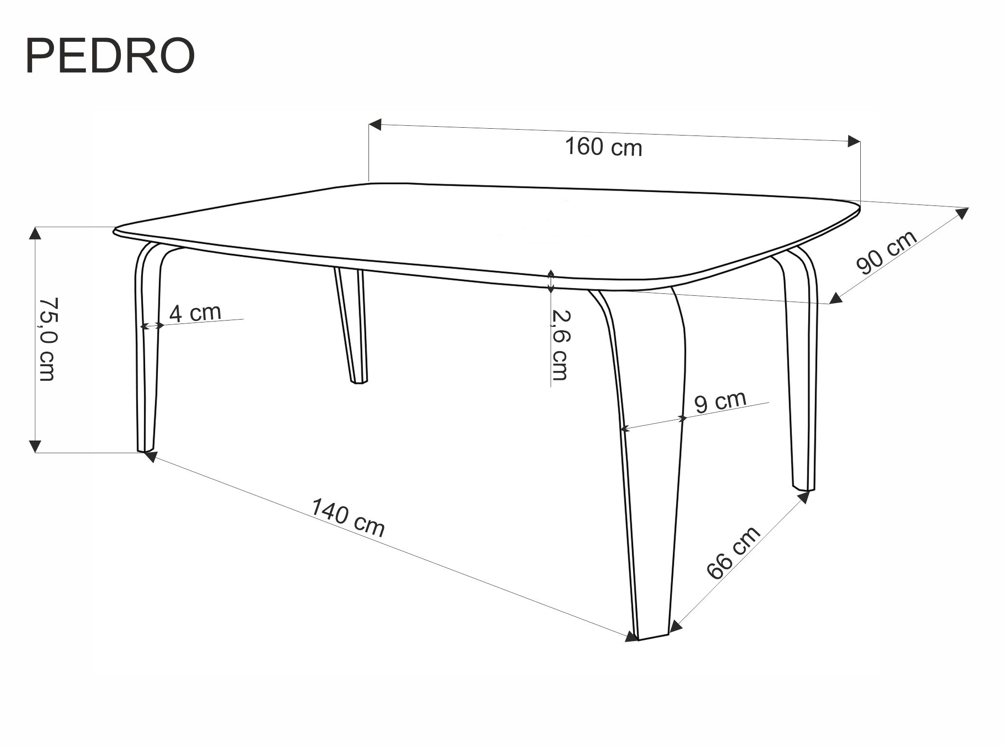 wymiary: 160/90/75/140 cm; materiał: MDF + okleina naturalna / drewno lite – kauczukowe, kolor: blat – orzechowy, nogi – czarmy