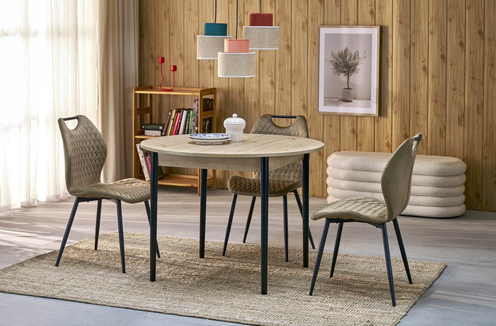 PIVOT stół rozkładany 102-142x102x75 cm, blat – dąb artisan, nogi – czarny