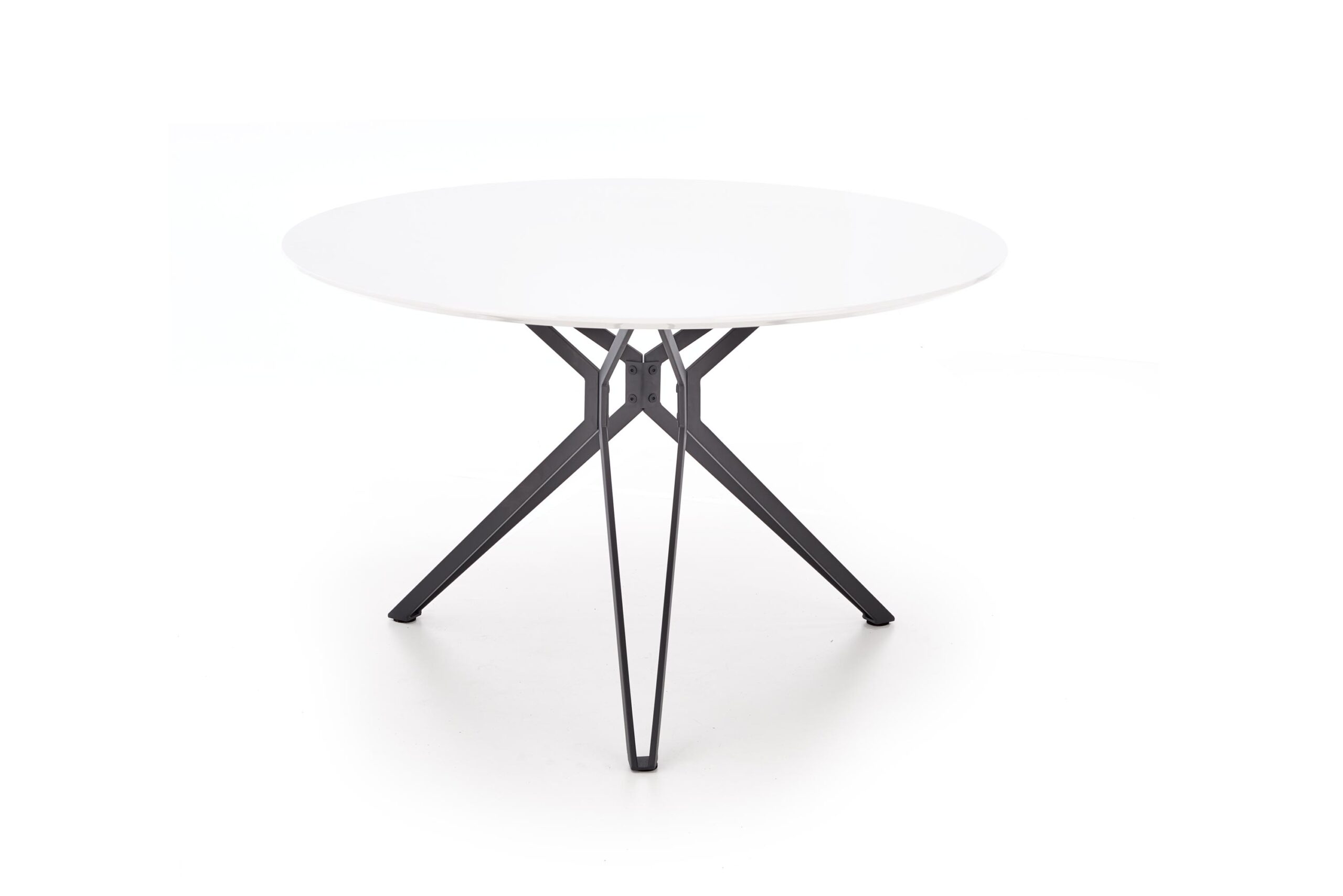 wymiary: fi120/76 cm, materiał: MDF lakierowany / stal malowana proszkowo, kolor: blat – biały, stelaż – czarny