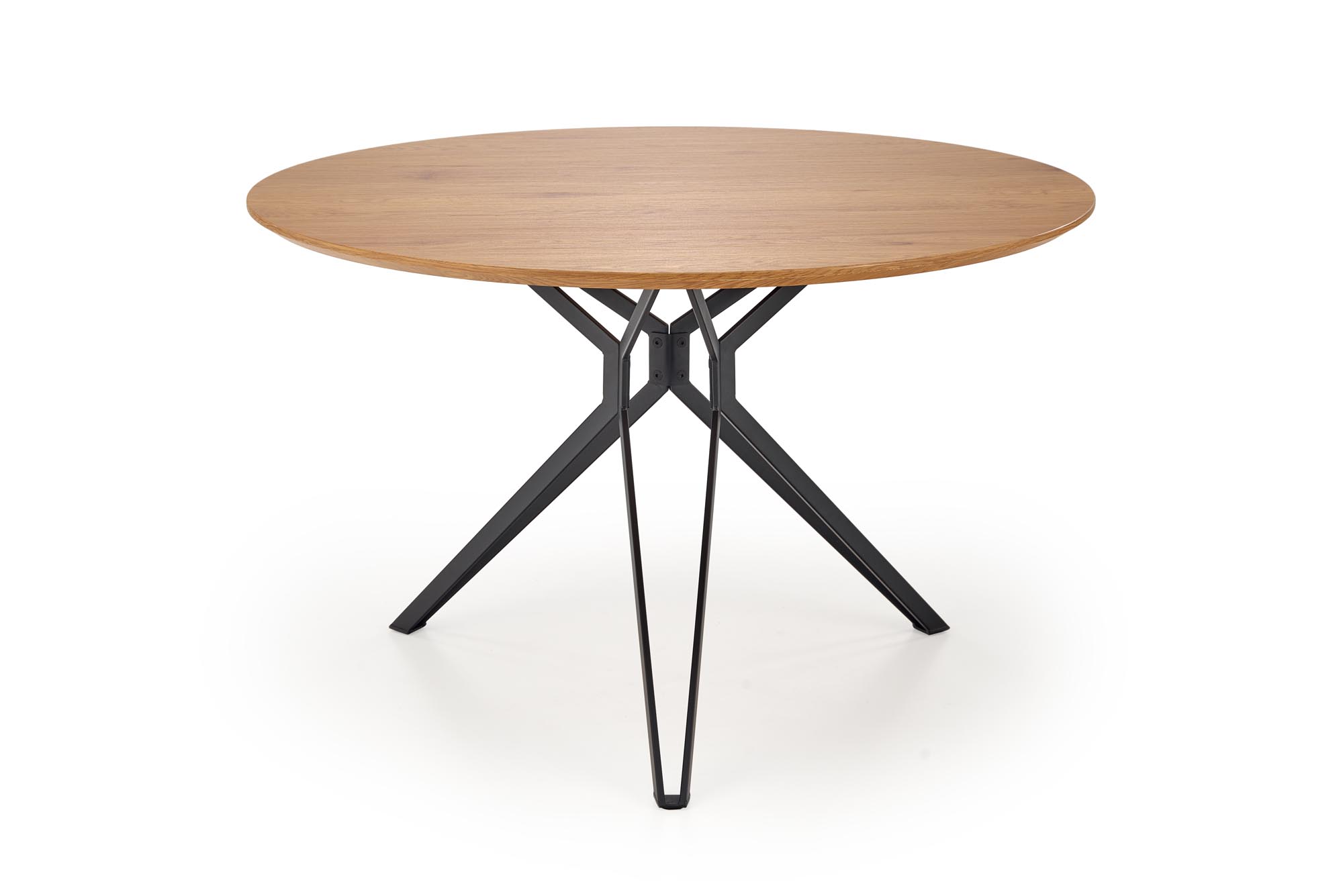 wymiary: fi120/76 cm, materiał: MDF laminowany / stal malowana proszkowo, kolor: blat – dąb złoty, stelaż – czarny