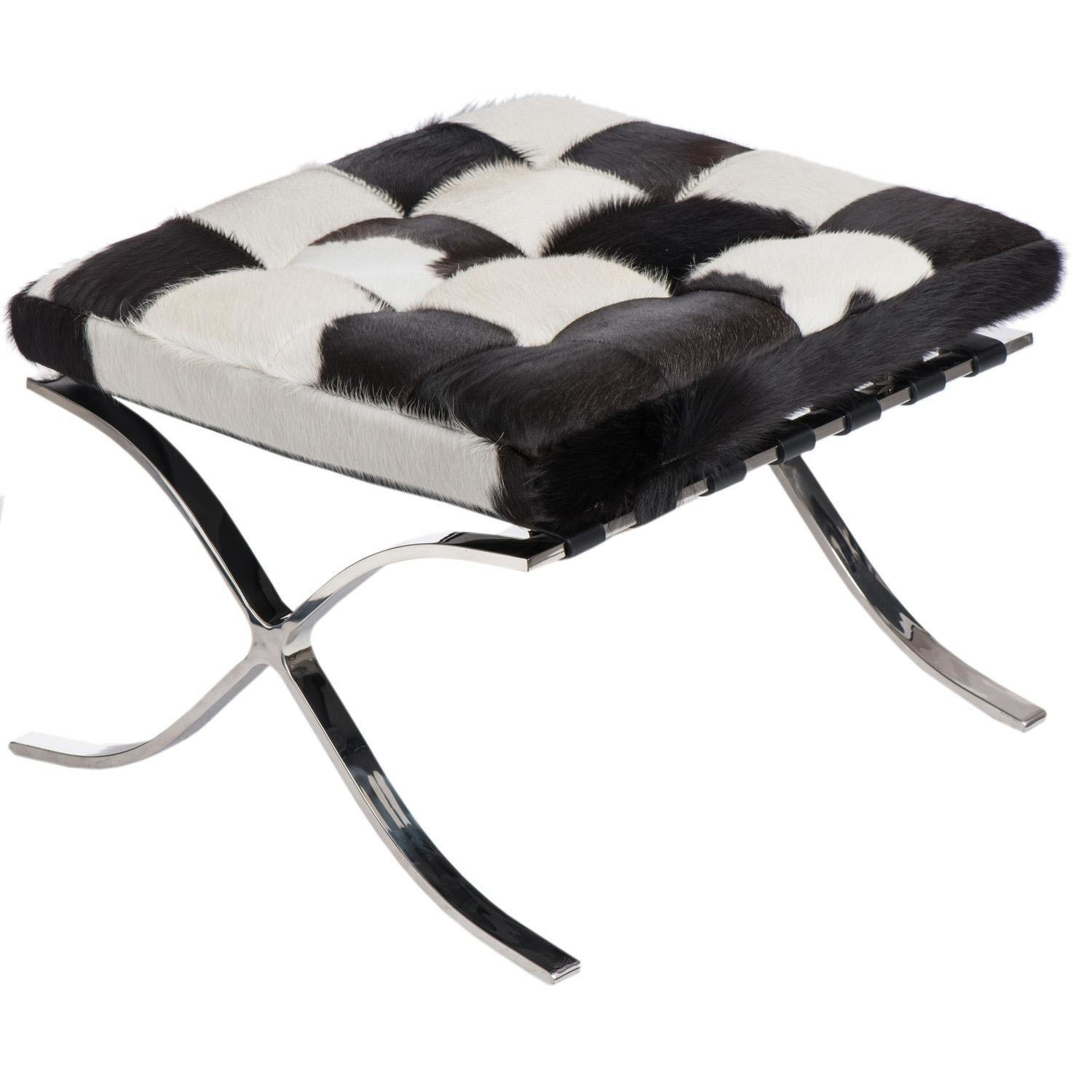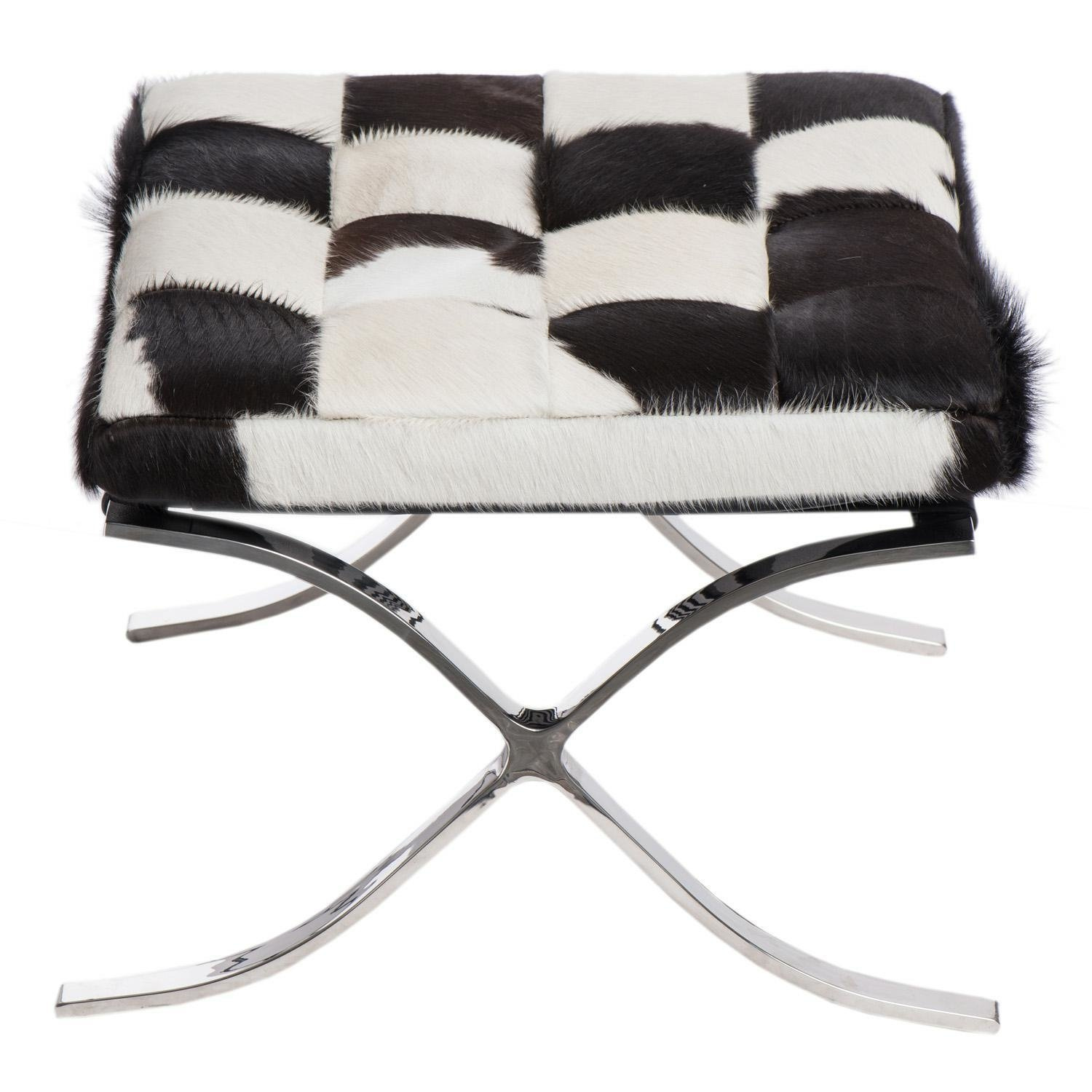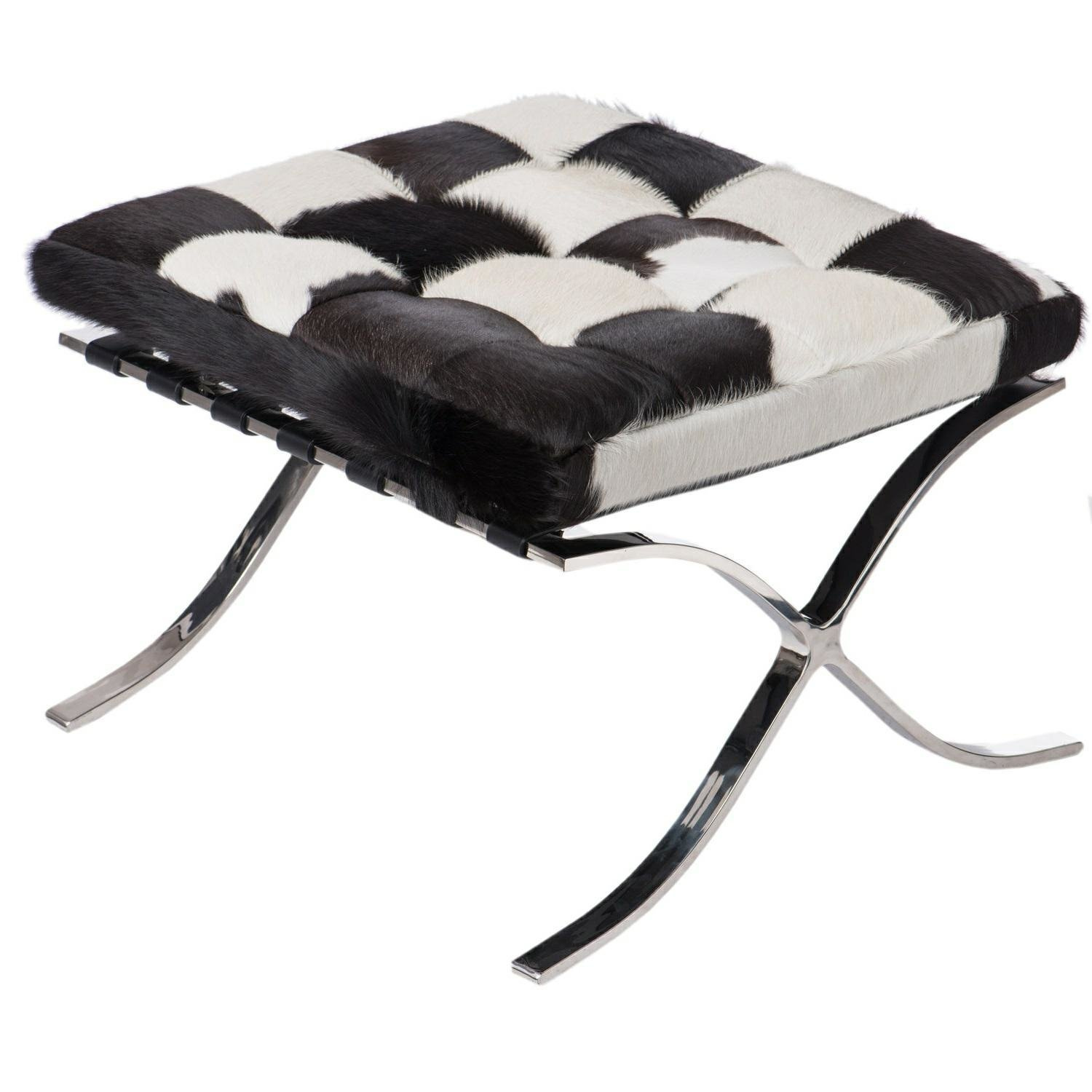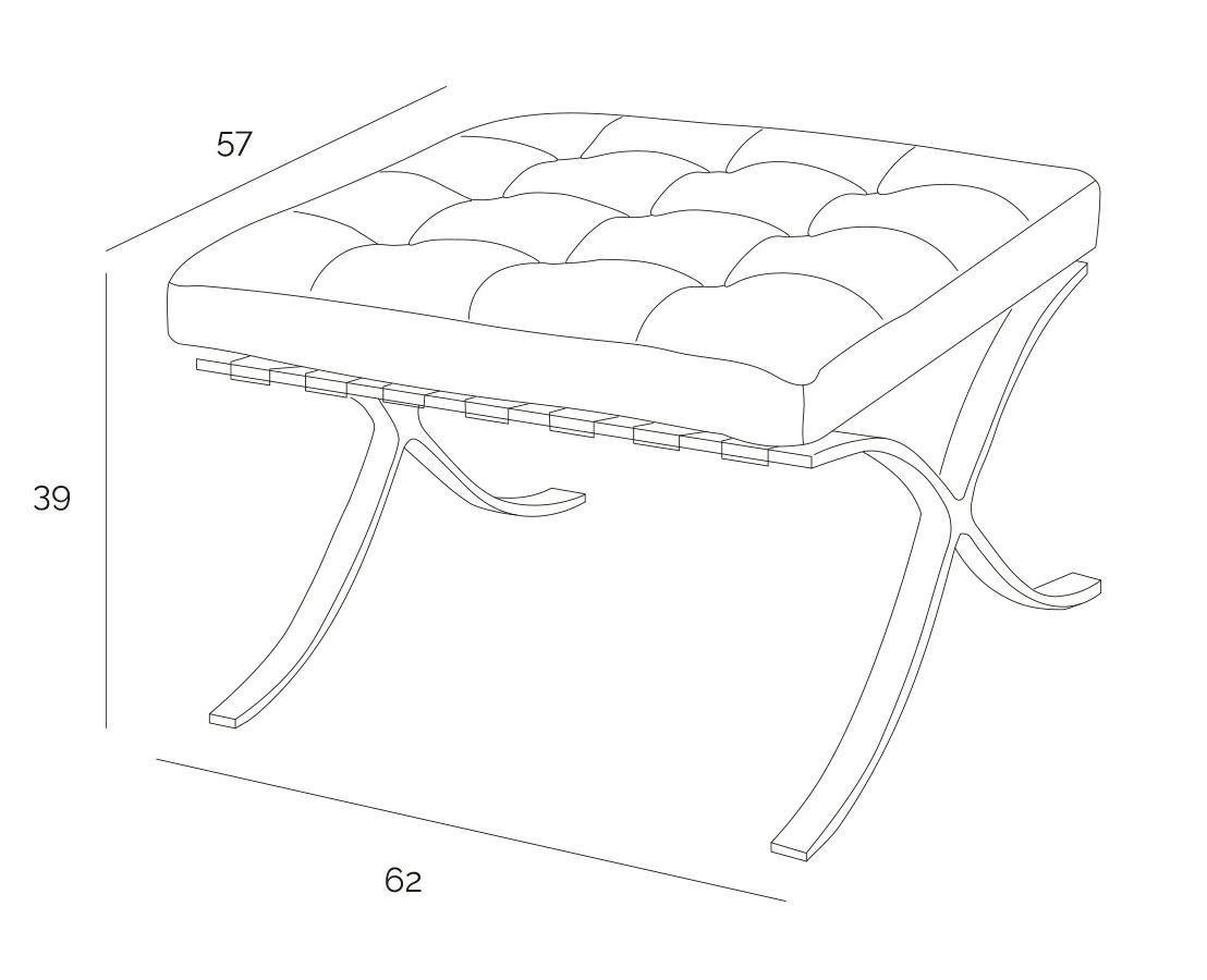 Jest to zaprojektowany w 1929 roku podnóżek, który powstał na zamówienie, i stanął w niemieckim pawilonie na wystawie w Barcelonie.,Charakterystycznie powyginana w kształt litery „X” chromowana podstawa oraz pikowana w kwadraty skóra naturalna to najbardziej charakterystyczne cechy tego podnóżka. Uzupełnieniem tego produktu jest fotel Barcelona i Barcelona stolik.,Podnóżek wykonany całkowicie ze skóry naturalnej.,
