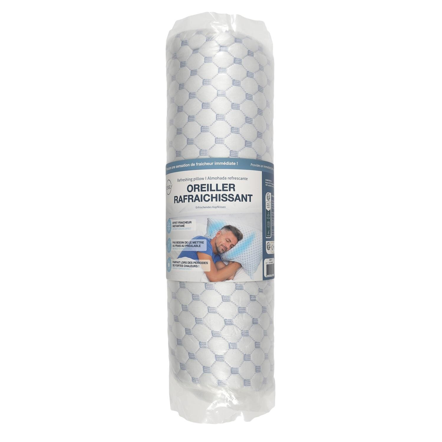 Poduszka chłodząca wprowadzi nasz sen na wyższy poziom komfortu. Poduszka, któa w dotyku wydaje się być chłodna doda rześkości i pozwoli uniknąć przegrzania. Wykonana z połączenia pianki poliestrowej i włókien bambusowych, które dają uczucie chłodu. Można prać w pralce i suszyć w suszarce. Waga poduszki 1,2 kg.