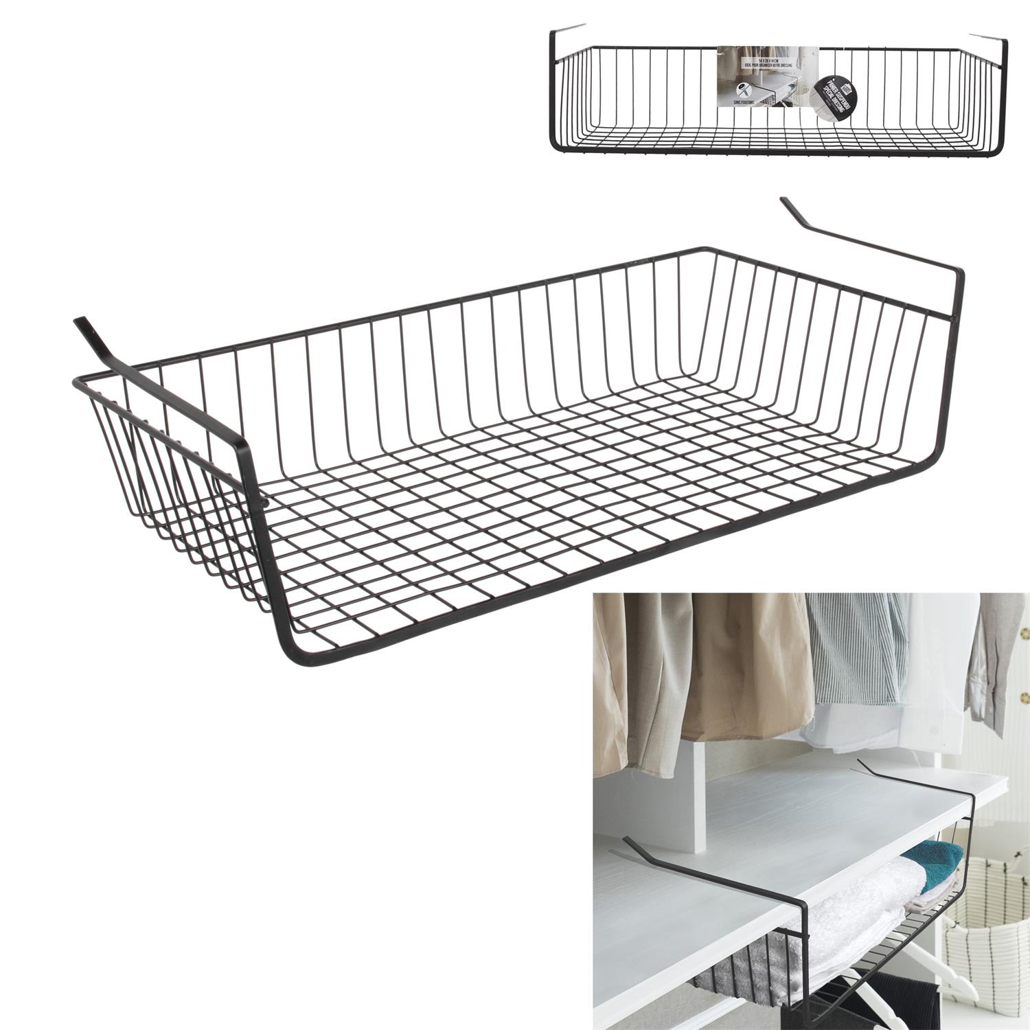 Zoptymalizuj przechowywanie w swoich szafkach dzięki temu wiszącemu drucianemu koszowi. Metalowy kosz kompatybilny jest ze standardowymi półkami w regałach. Kosz będzie idealny na przyprawy lub nawet i odzież.