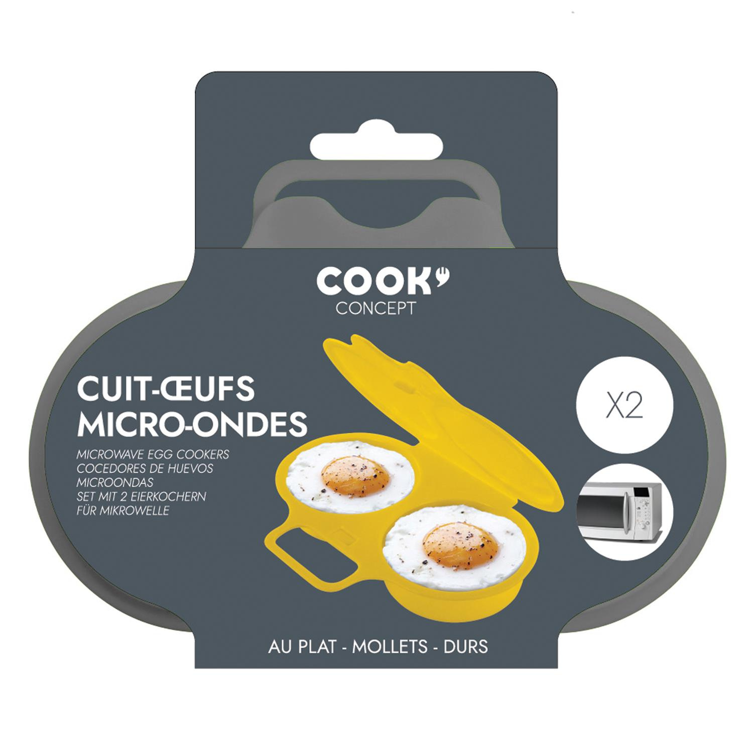 Dzięki temu pojemnikowi z silikonu łatwo ugotujesz jajko sadzone w mikrofalówce. Pjemnik wyposazony w dwie przegródki na jajka. Wystarczy wbić jajka i wstawić do kuchenki. Łatwy sposób na podanie równych, dobrze ugotowanych jajek.