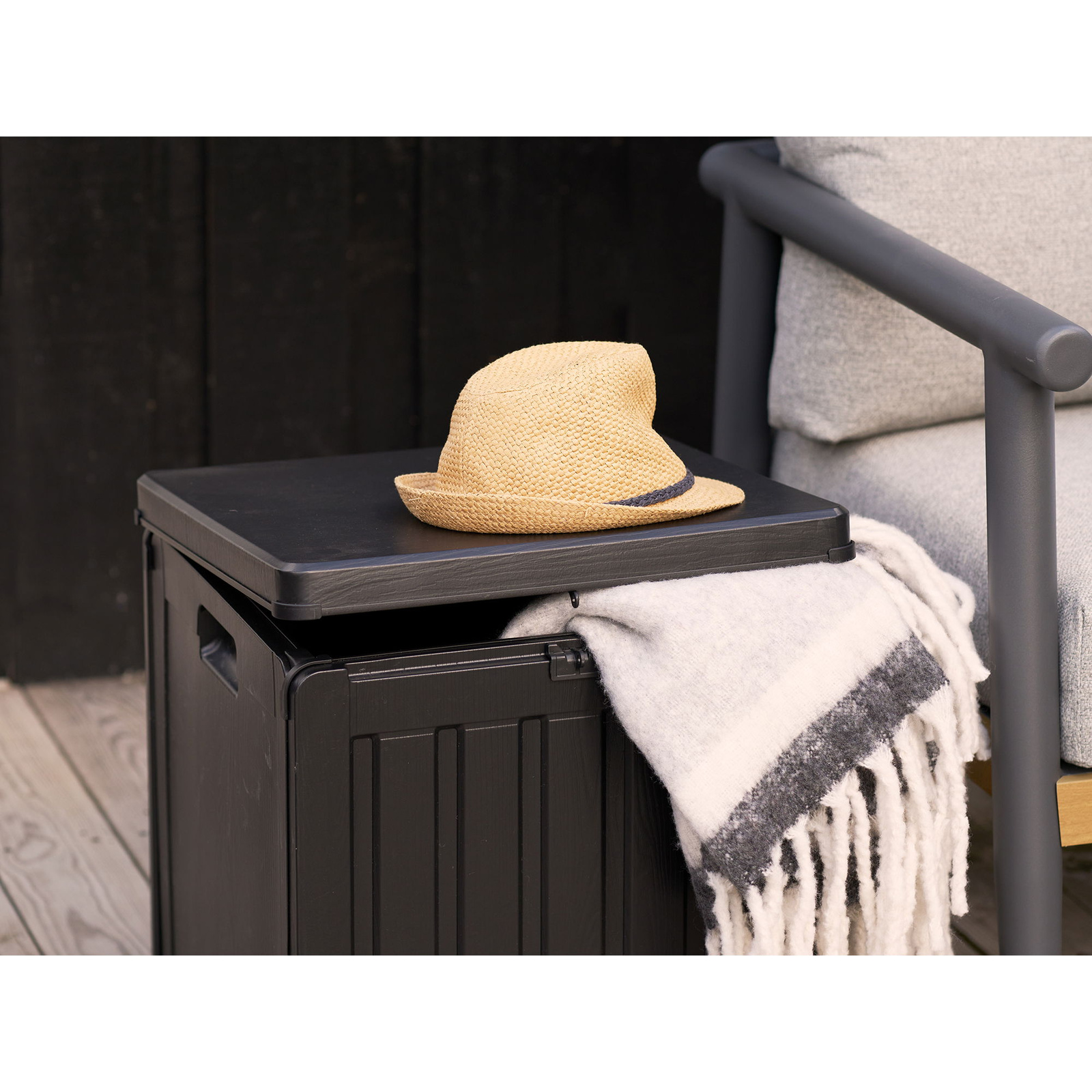 Pojemnik na poduszki, plastik, czarny, 42,8×42,8×46,4 cm, 76 l, PP