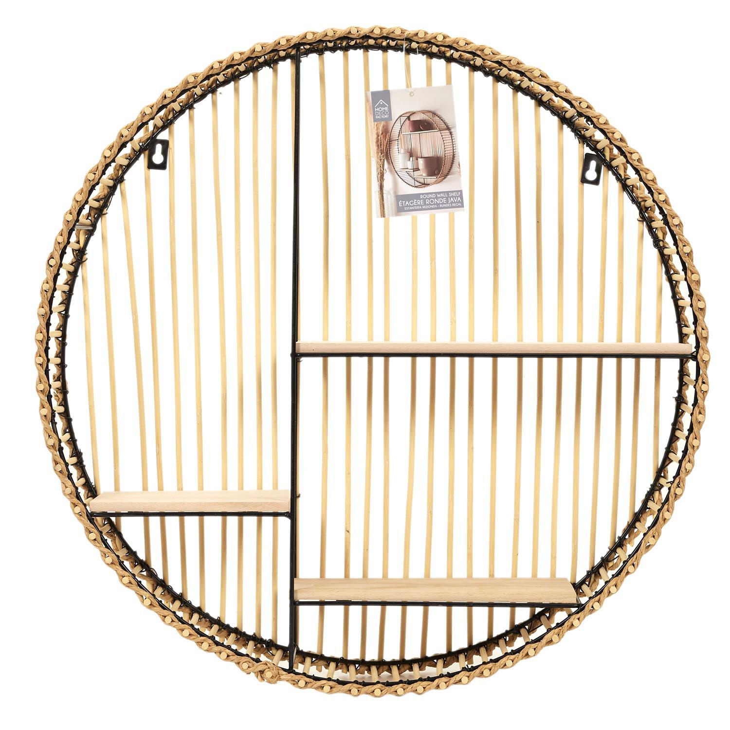 Okrągła półka Bali to połączenie metalowego szkieletu, drewnianych półek oraz rattanu, który został ozdobnie przepleciony. Półka Bali o okrągłym kształcie zachowana została w stylu boho. Jej kolory oraz materiały korespondują z naturą.