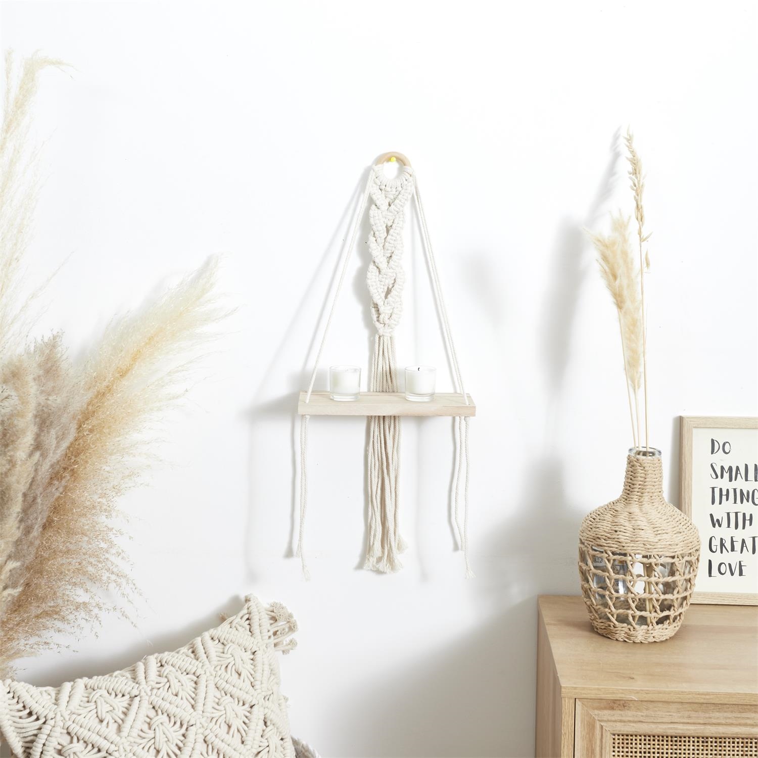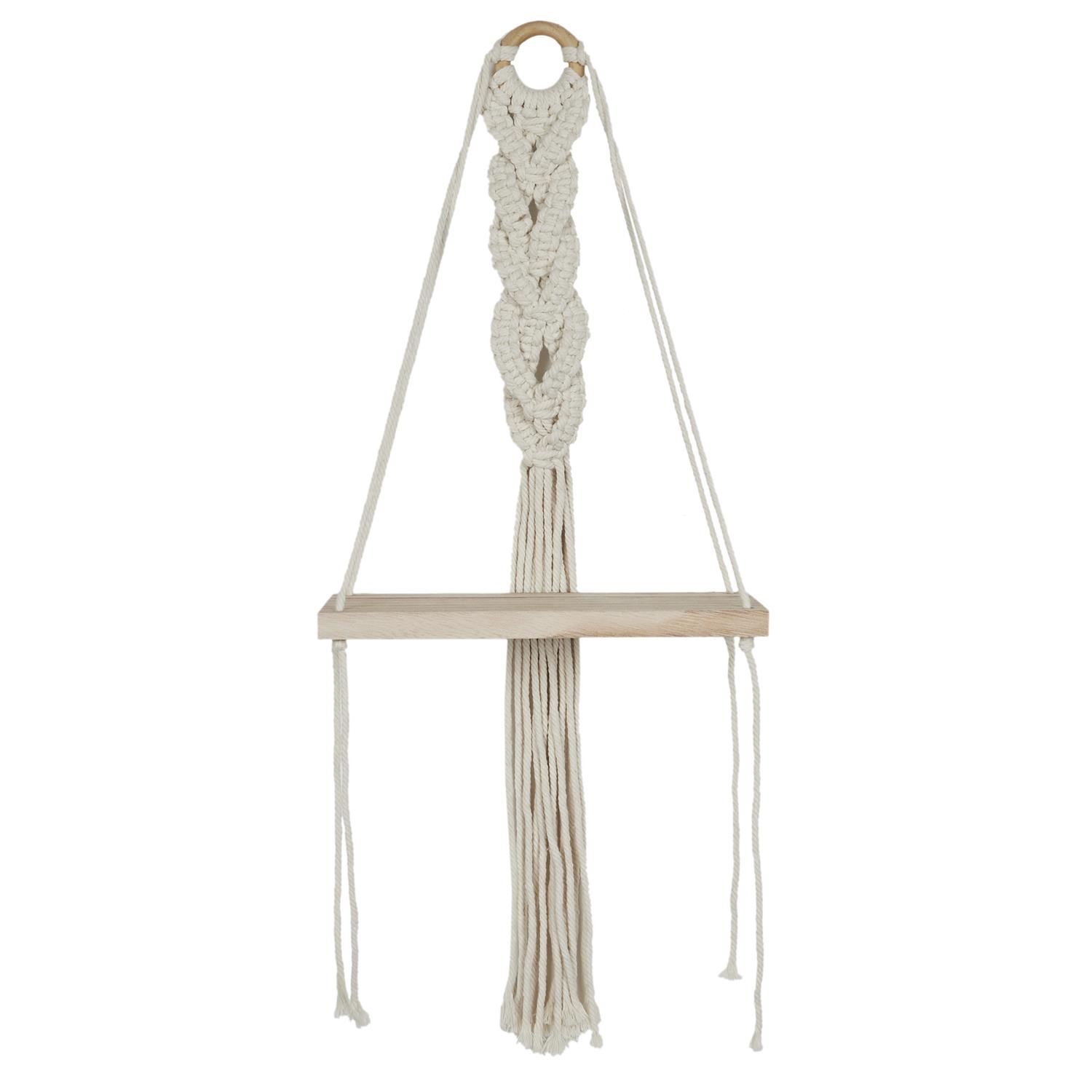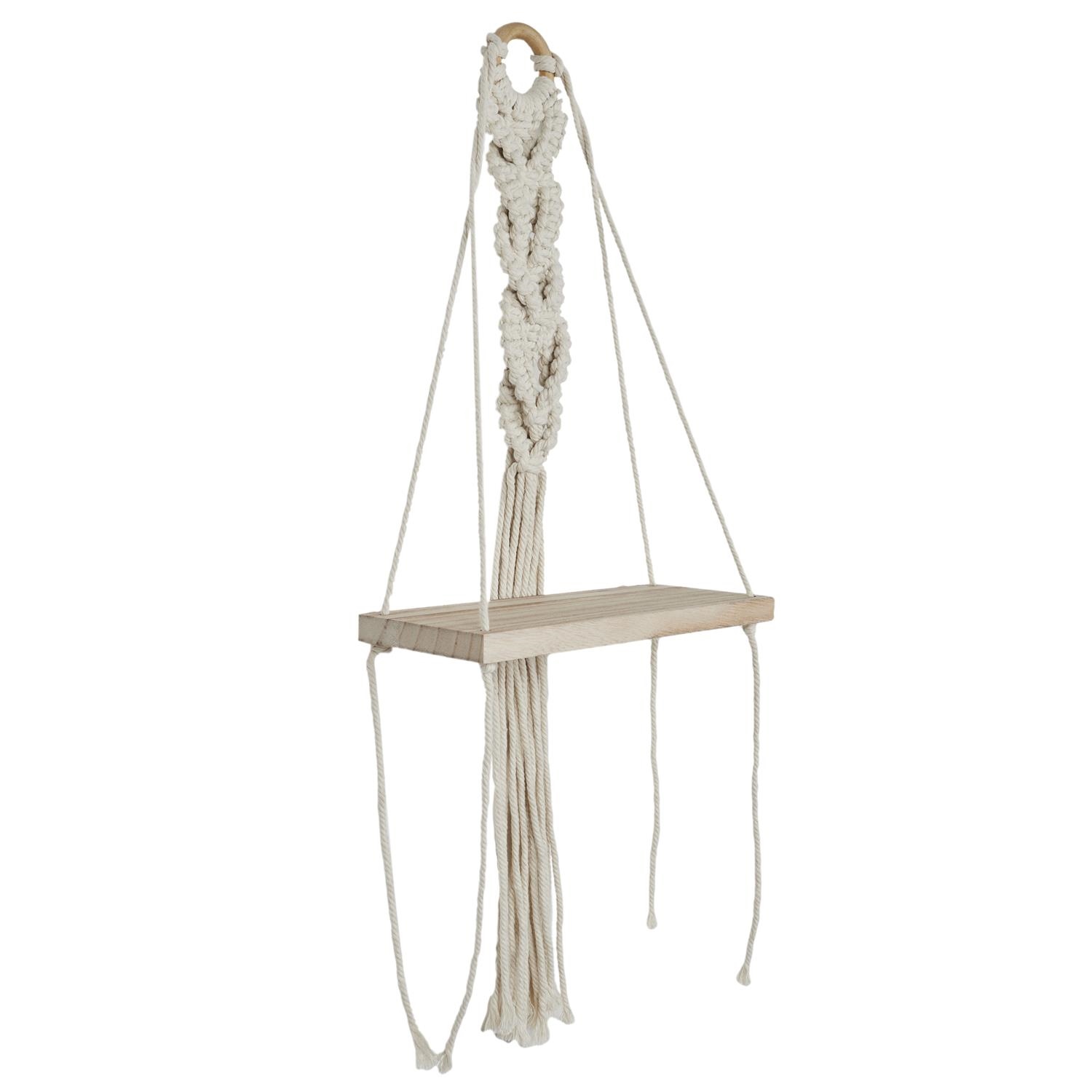 Półka Boho to połączeni bawełnianej, plecionej konstrukcji z sosnowymi półkami. Pleciona w stylu macramy półka sprawdzi się w naturalnym, jasnym wnętrzu. Max obciążenie: 5kg