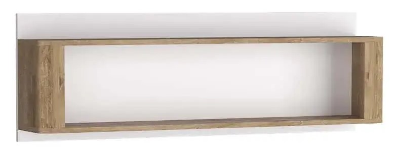 Niespotykana półka w formie BOXu na książki. Półka do zawieszenia na ścianie. Biała płyta w połysku, która tworzy tło jest idealnym rozwiązaniem do każdego koloru ścian pomieszczenia. Naturalne kolory ribbeck i biel stworzą delikatne połączenie z pozostałymi elementami systemy w pokoju.