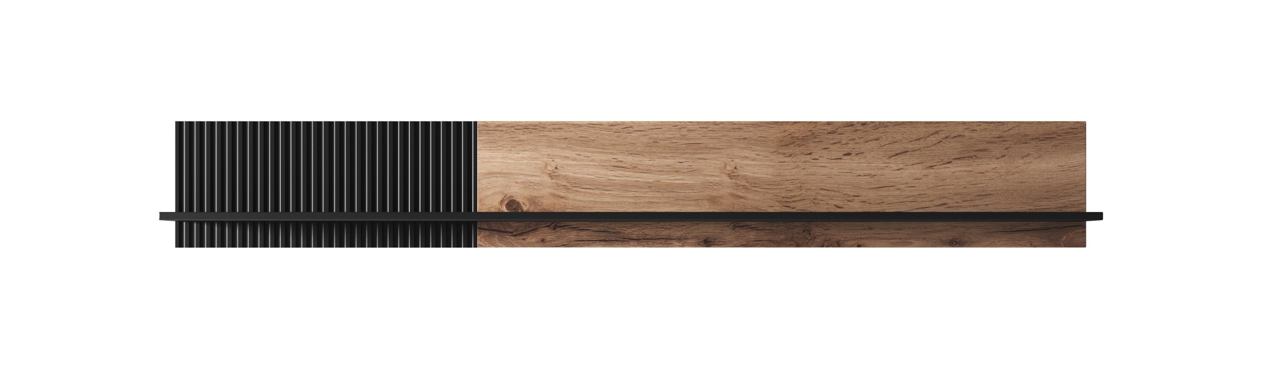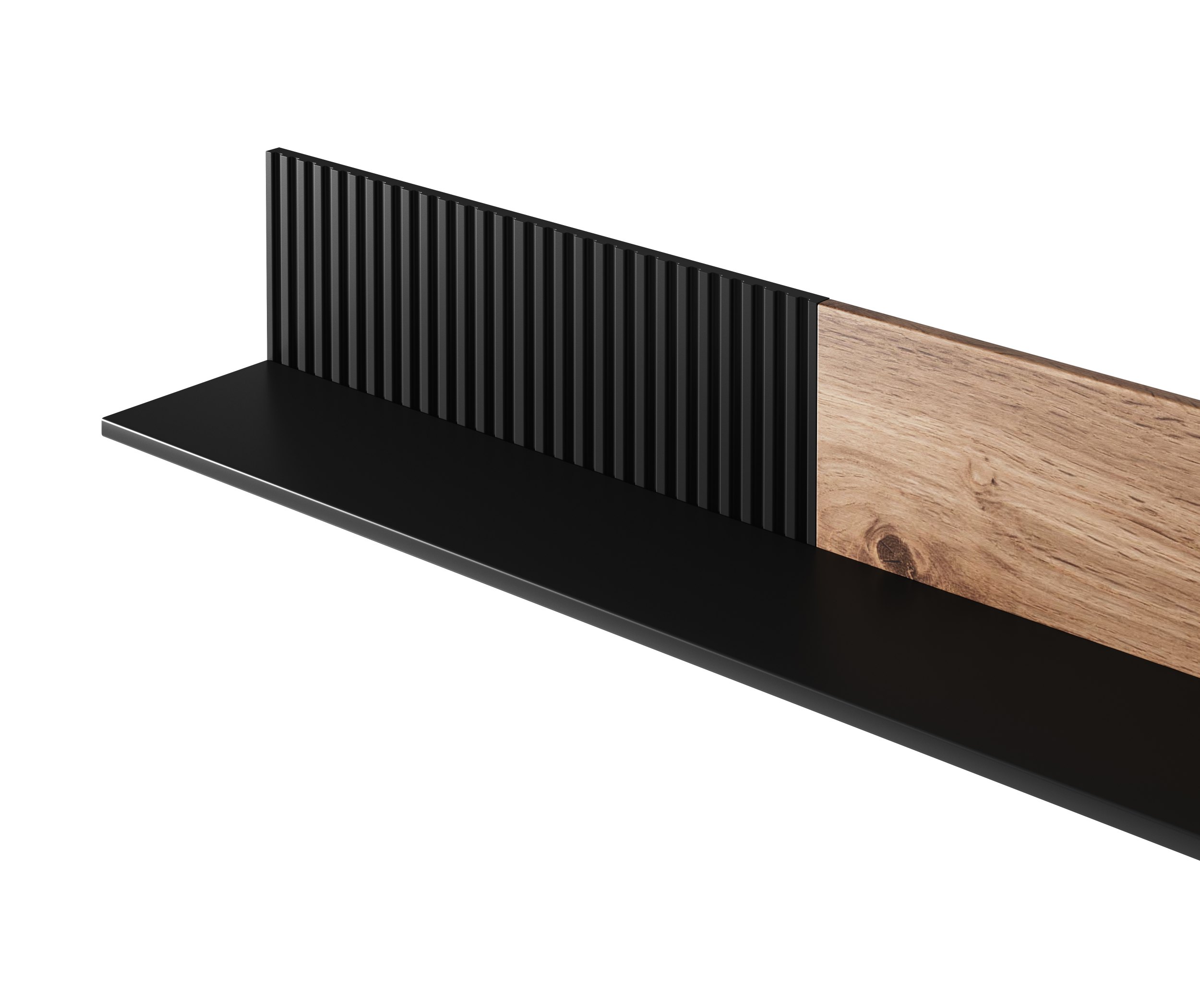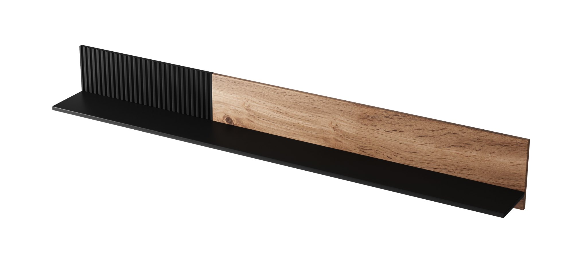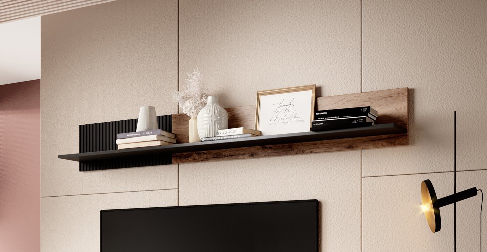 półka wisząca, wymiary: 180/20/25 cm, materiał: MDF okleinowany / płyta meblowa okleinowana / polipropylen, kolor: dąb wotan – czarny