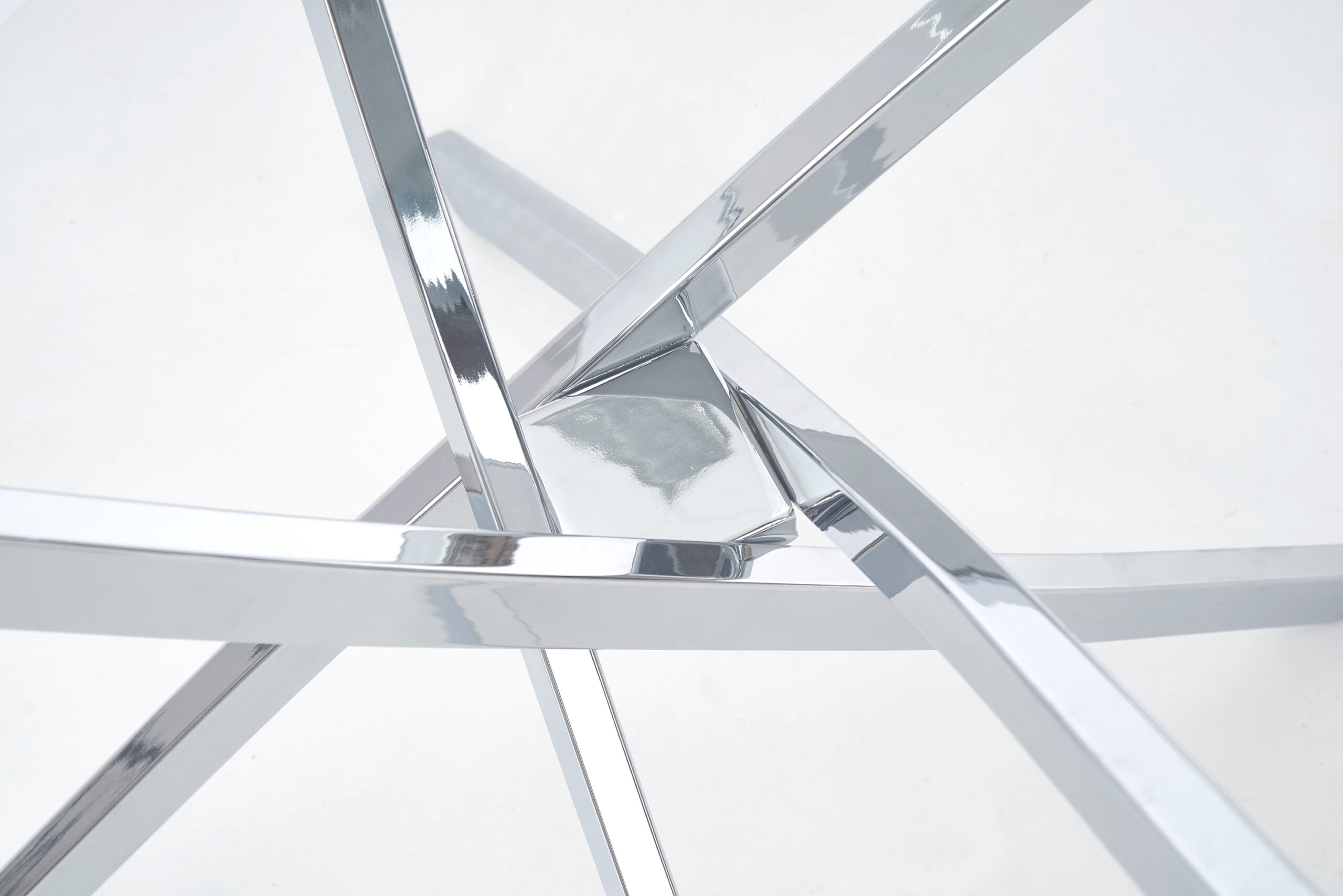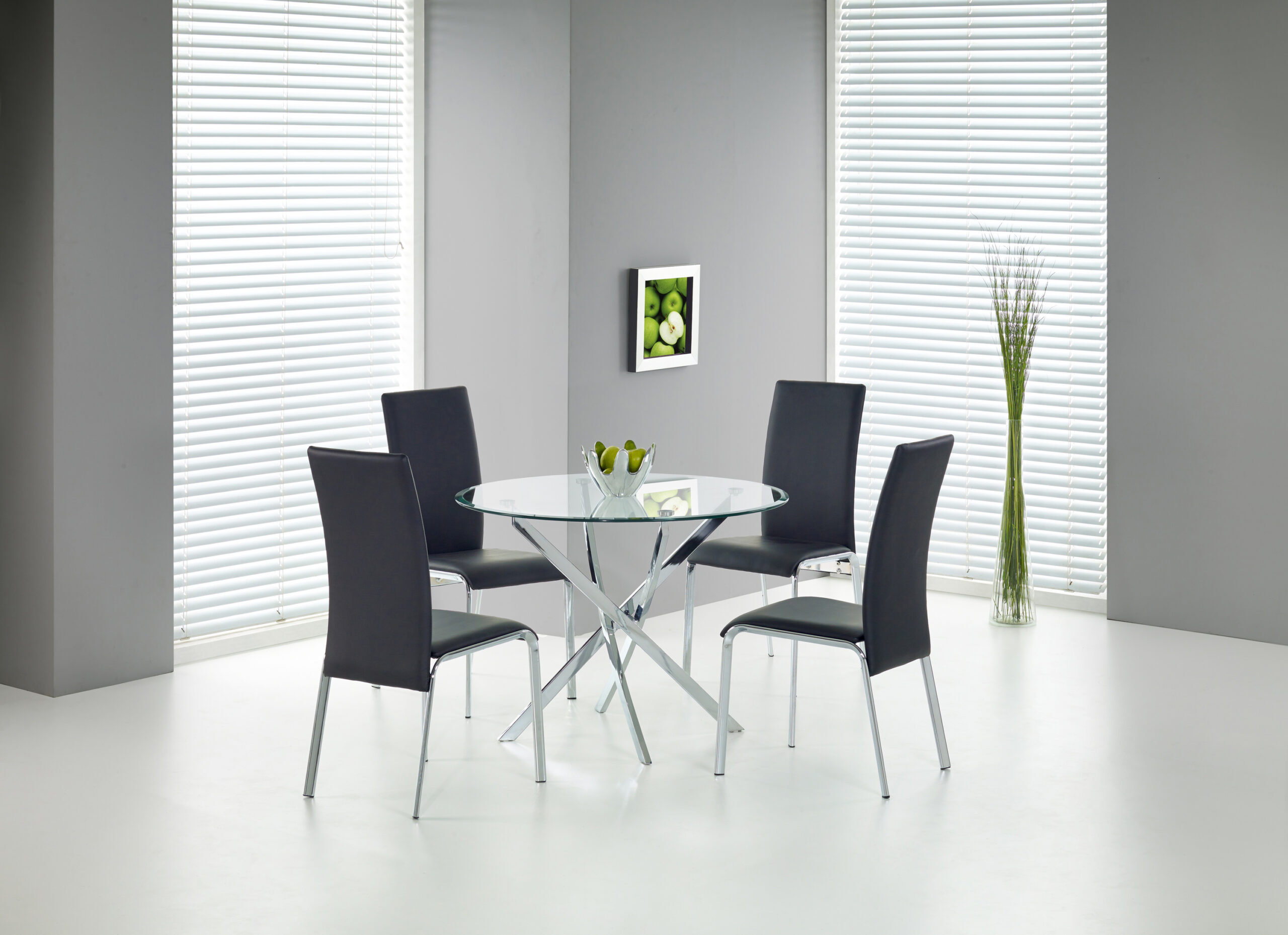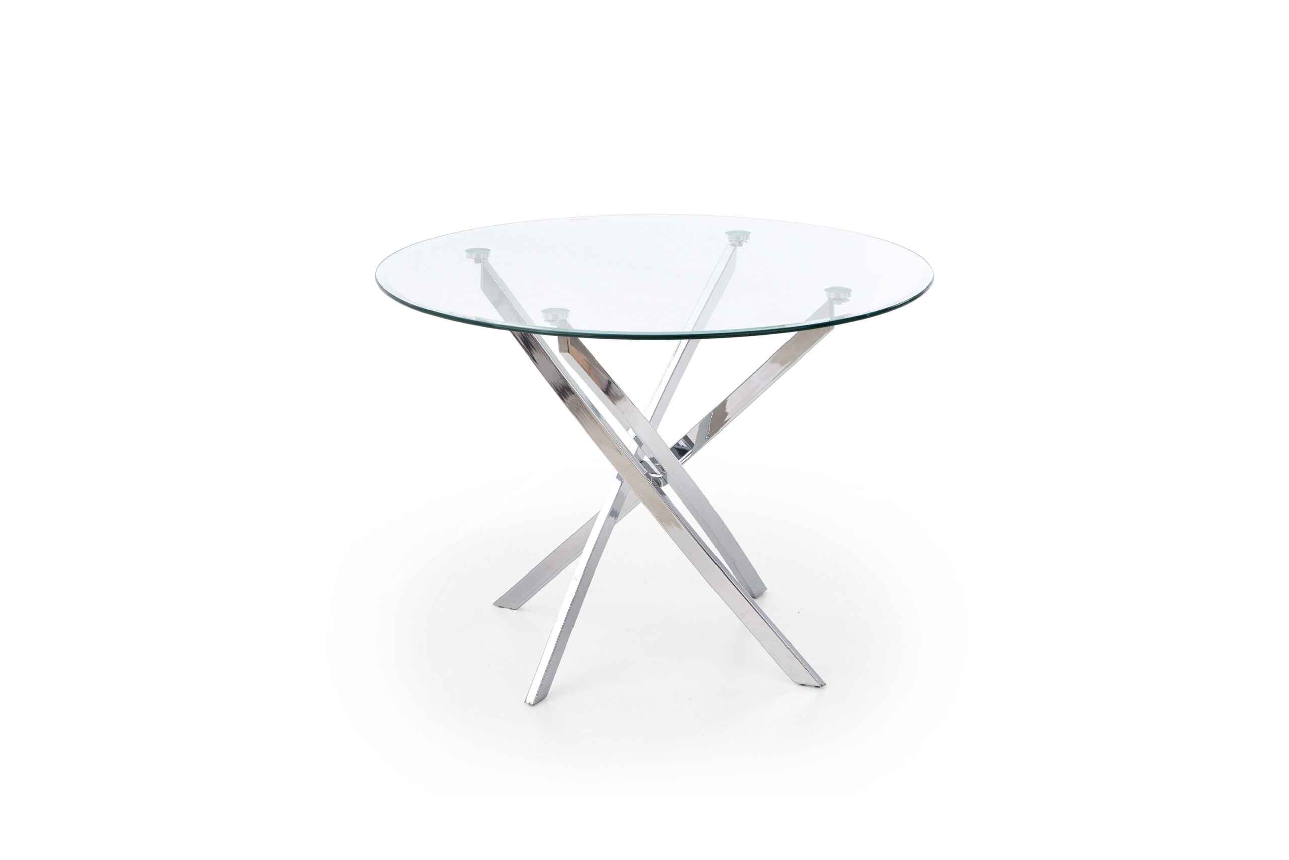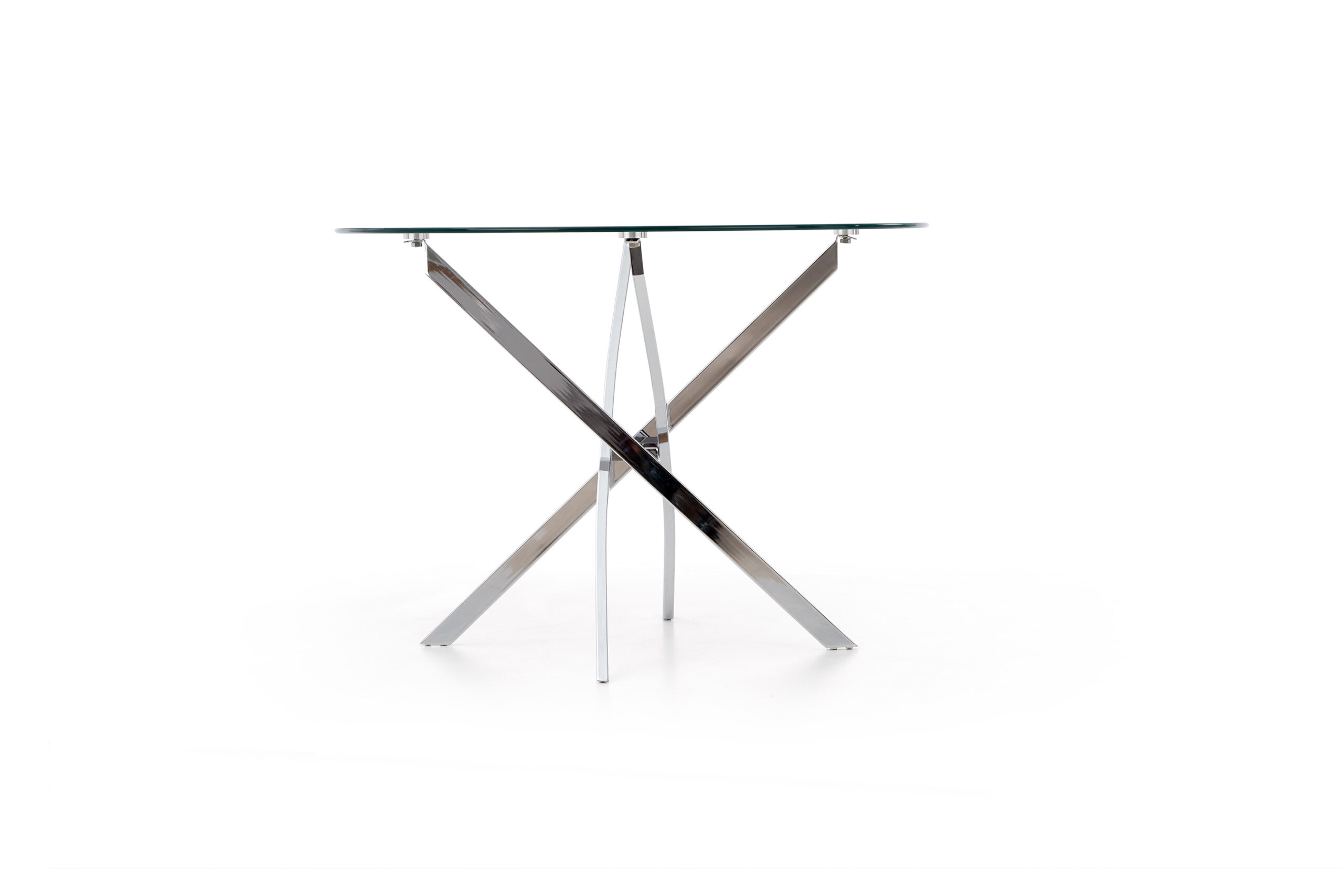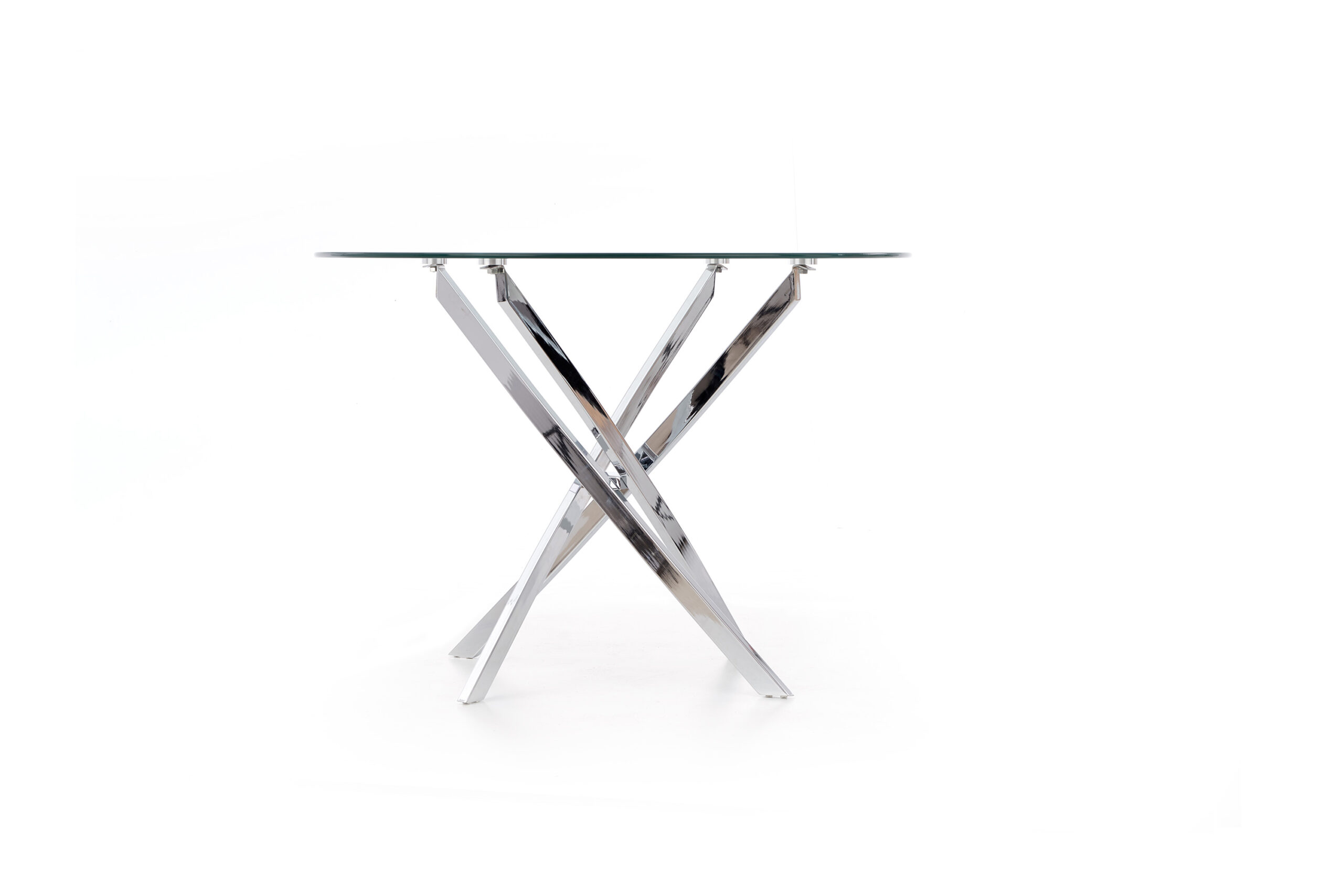 wymiary: fi100/73 cm, materiał: szkło / stal chromowana, kolor: szkło – bezbarwny, nogi – chrom