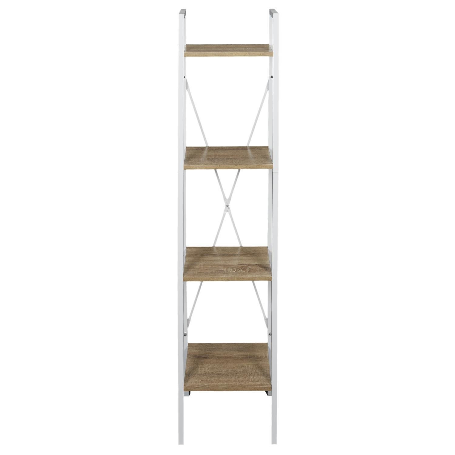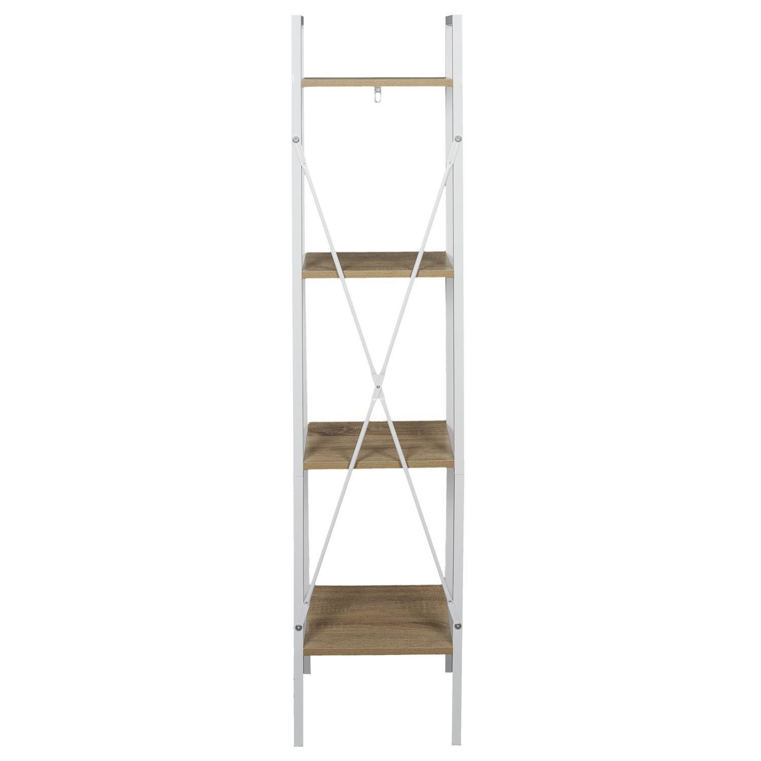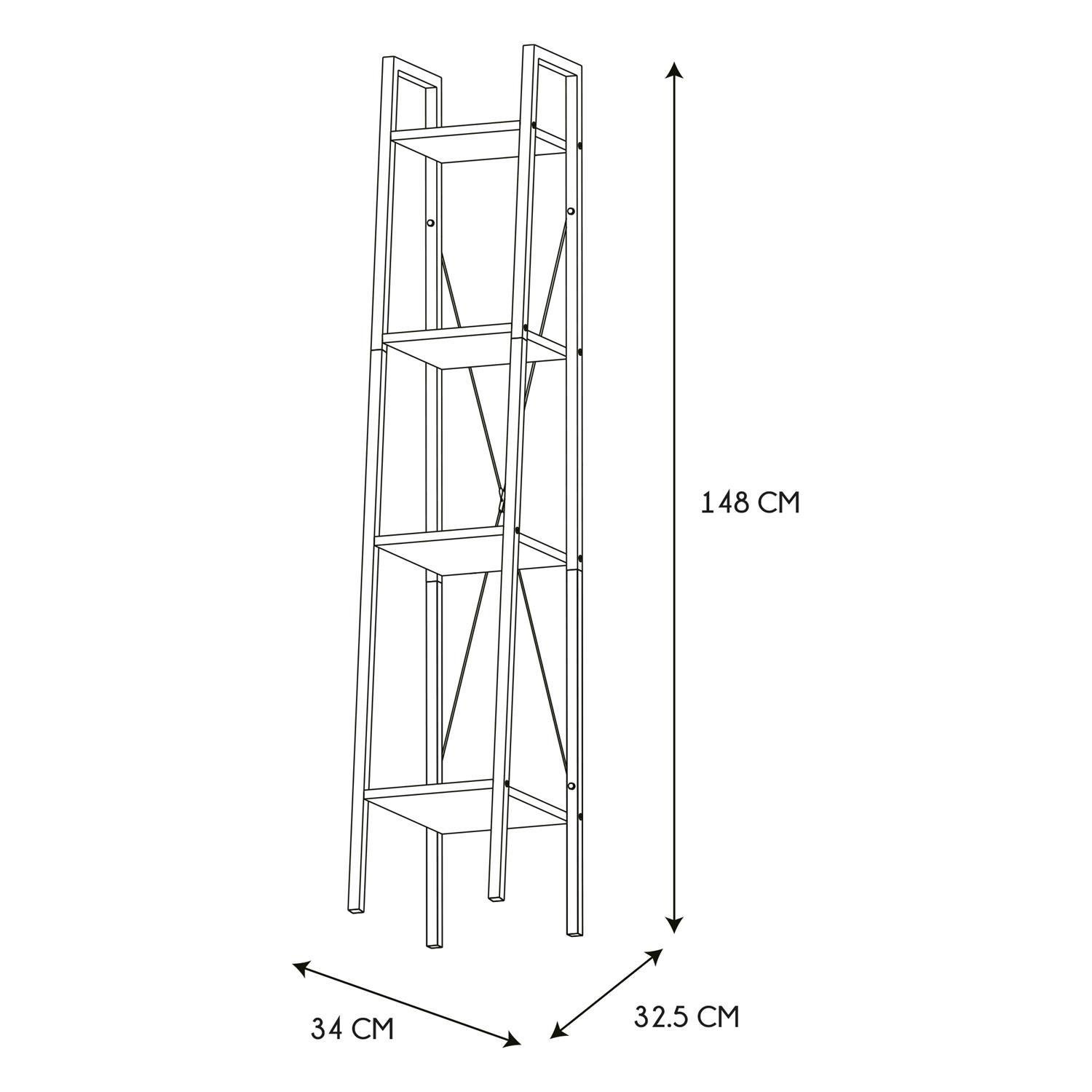 Regał Cilyan to wyjątkowy mebel do nowoczesnych i loftowych pomieszczeń. Regał, dzięki połączeniu czarnego koloru oraz koloru jasnego dębu, prezentuje się wyjątkowo lekko i zgrabnie. Proszkowo pomalowana na czarno rama mebla charakteryzuje się dużą trwałością, odpornością na korozję, wysoką temperaturę oraz uszkodzenia mechaniczne, dzięki czemu znacznie podnosi walory użytkowe i estetyczne mebla. Z kolei cztery półki to wysokogatunkowa płyta MDF pokryta laminatem imitującym drewno, dzięki czemu powierzchnie półek są gładkie i wytrzymałe. Prosta konstrukcja wsparta została stalowymi prętami, które prócz funkcji wspornika są również ciekawym elementem dekoracyjnym. Max. obciążenie na jedną półkę: 6 kg