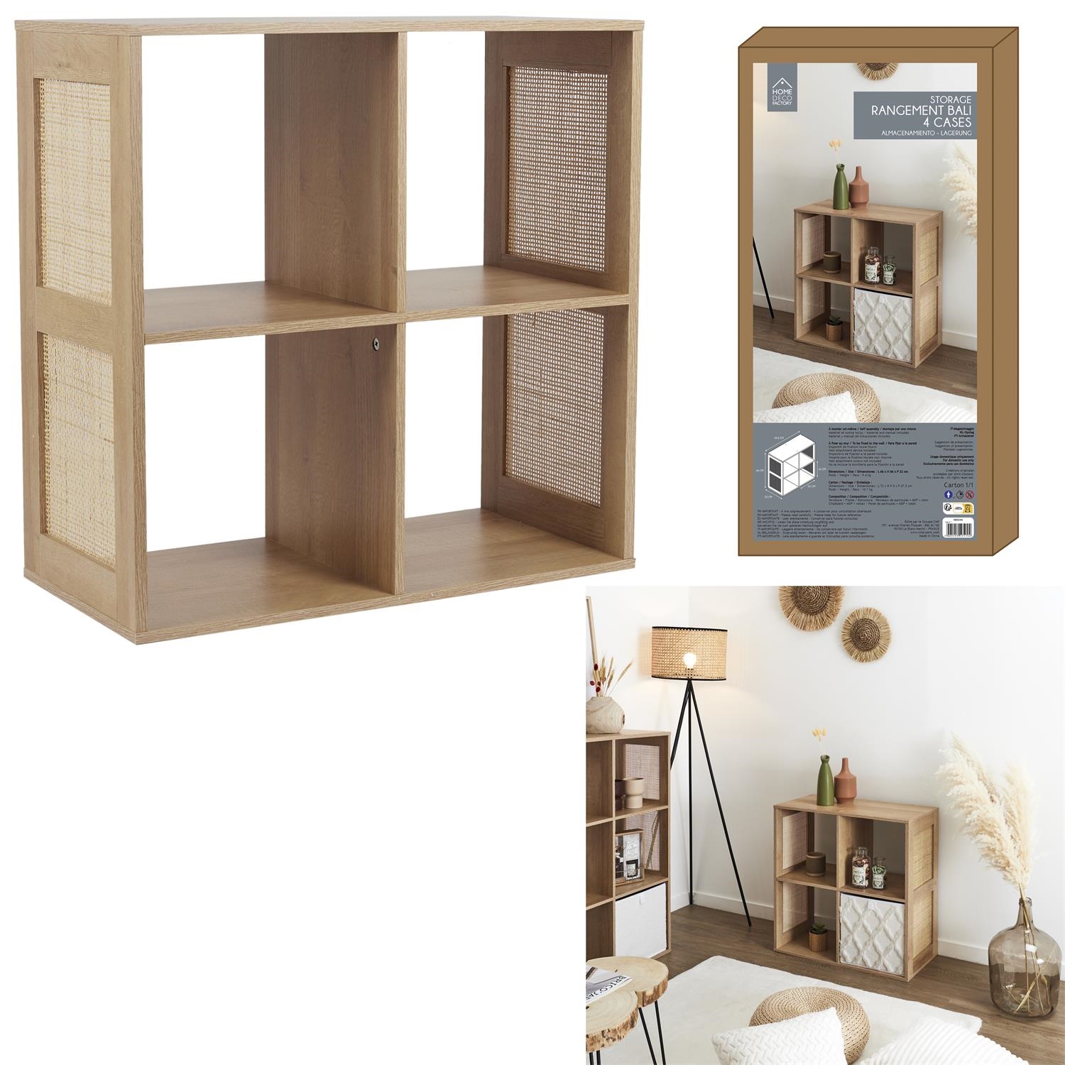 Regał Kali o rattanowym wykończeniu to idealne połączenie wytrzymałej płyty MDF w okleinie imitującej drewno oraz rattanowych, ozdobnych boków. Współgrające ze sobą materiały tworzą mebel idealny do wnętrz w naturalnym stylu czyli boho lub skandi. Regał wymaga samodzielnego montażu. Do regału kompatybilne sa pudełka o wymiarach 30x30x30cm. Wymiary kartonu: 37,5x10x73cm