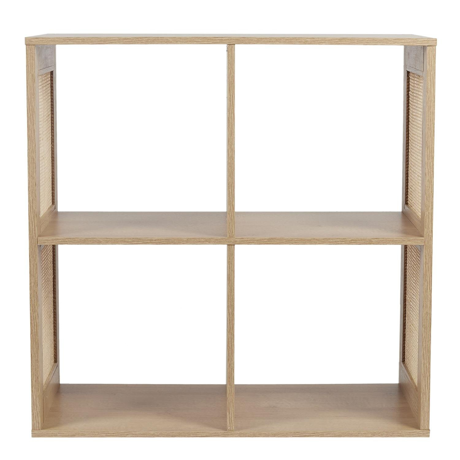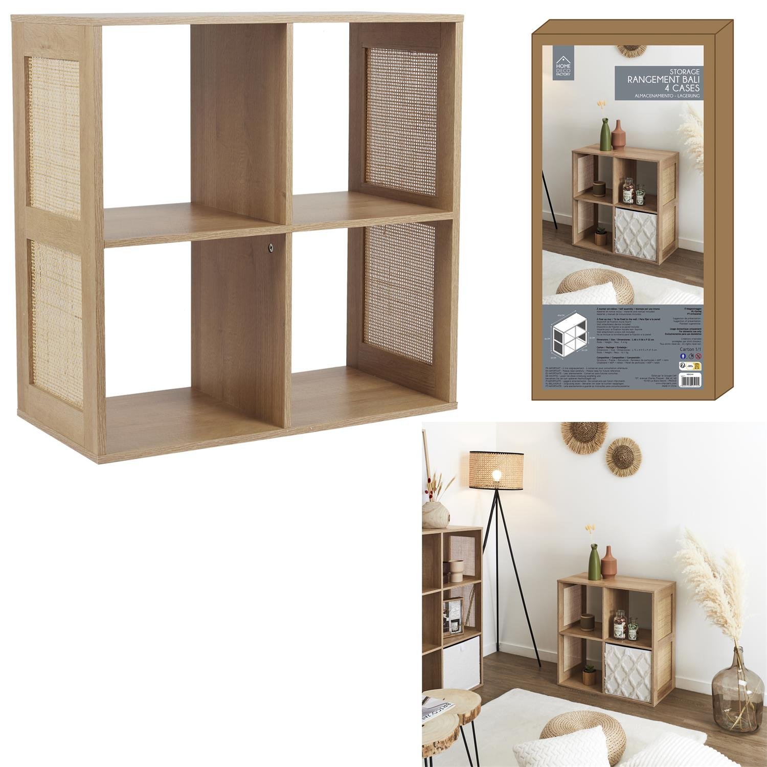 Regał Kali o rattanowym wykończeniu to idealne połączenie wytrzymałej płyty MDF w okleinie imitującej drewno oraz rattanowych, ozdobnych boków. Współgrające ze sobą materiały tworzą mebel idealny do wnętrz w naturalnym stylu czyli boho lub skandi. Regał wymaga samodzielnego montażu. Do regału kompatybilne sa pudełka o wymiarach 30x30x30cm.