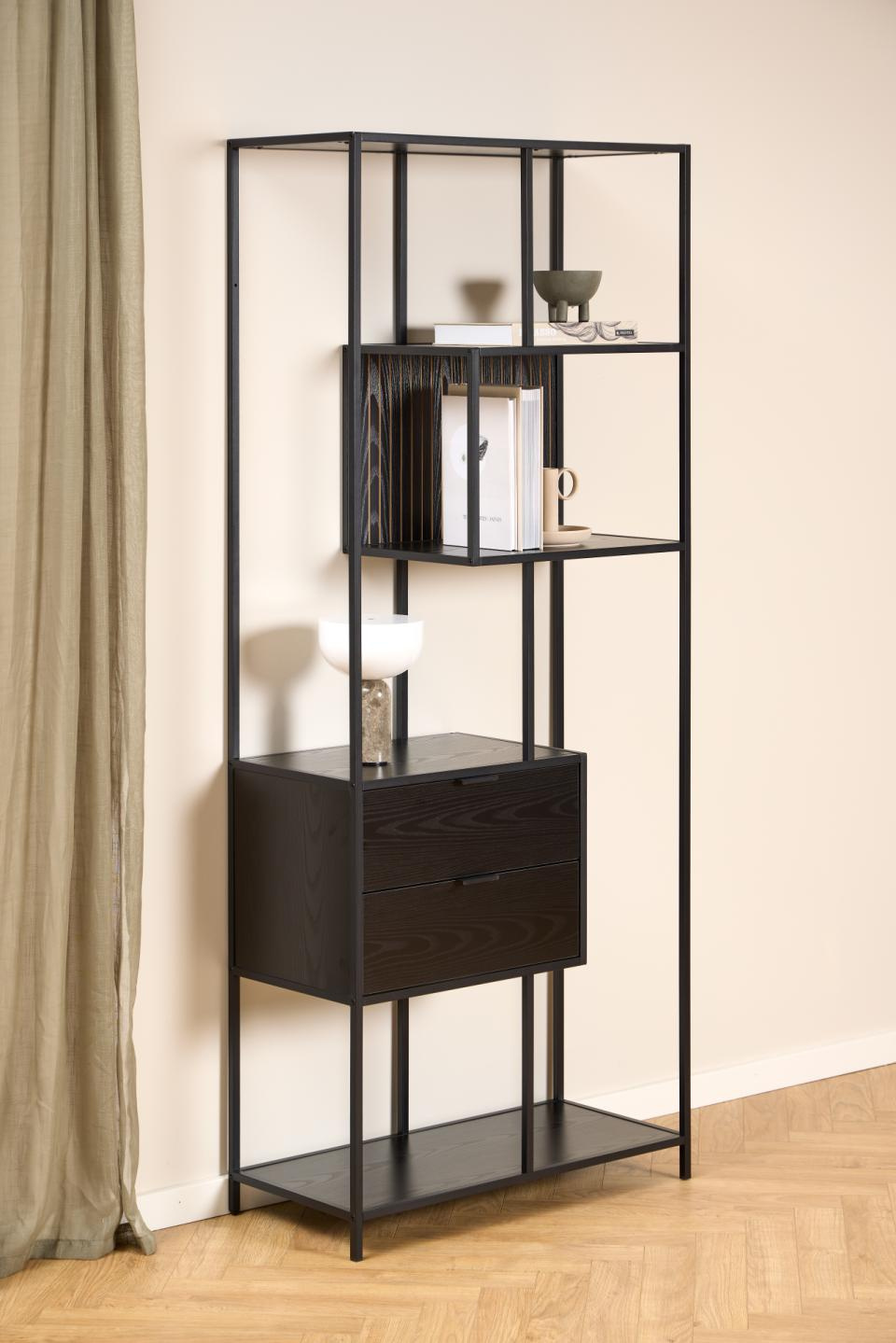 Regał Seaford II z 2 szufladami czarny