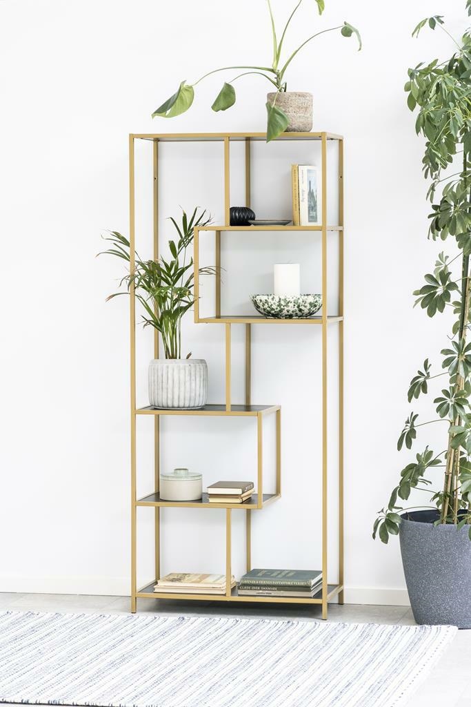 Regał Seaford został zrobiony z wytrzymałego metalowego szkieletu oraz czteru mniejszych i dwóch większych półek z MDF oklejonych okleiną. Metalowa konstrukcja została pomalowana proszkowo na czarno. Jej matowe wykończenie nadaje całości elegancji. Biała okleina na półkach idealnie kontrastuje z czarnym kolorem konstrukcji. Regał stoi na niewysokich nóżkach. Waga: 17,3 kg. Wymiary kartonu: 9,5cm x 189cm x 40cm