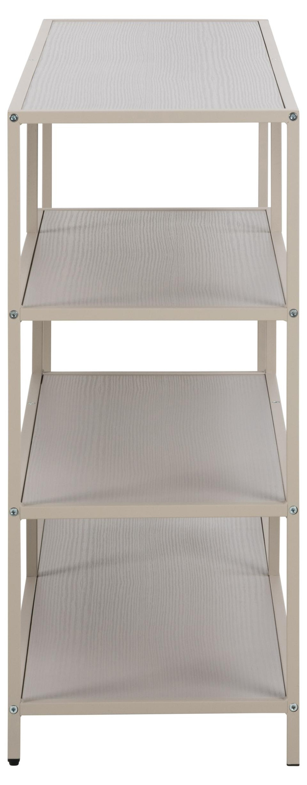 Wykonany z ramy z szarej stali, regał przyciąga wzrok dzięki kojącemu, szaremu kolorowi i asymetrycznym detalom. Wyposażony w 4 szare półki z łatwą w pielęgnacji powierzchnią, regał jest idealnym miejscem do przechowywania książek, gier i dekoracji, które zasługują na wyeksponowanie.