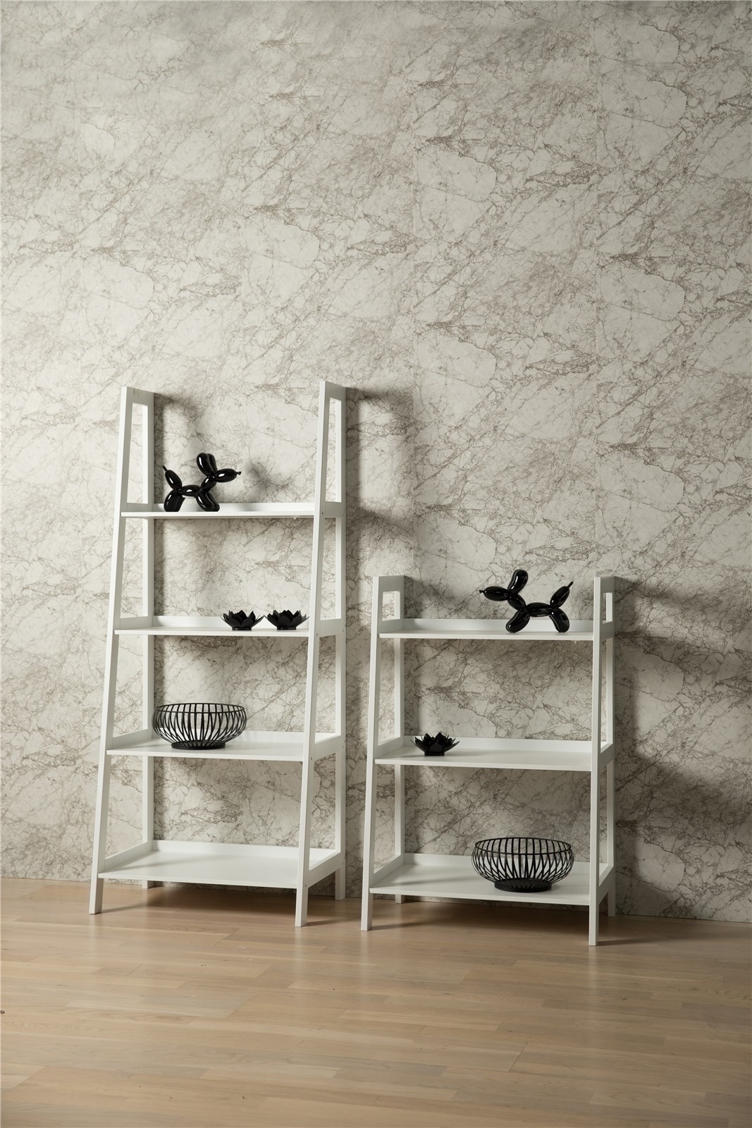 Regał Wally II wykonany został z płyty mdf lakierowanej na kolor biały. Każda półka posiada maksymalny udźwig do 30kg. Regał wykonany został w skandynawskim stylu.