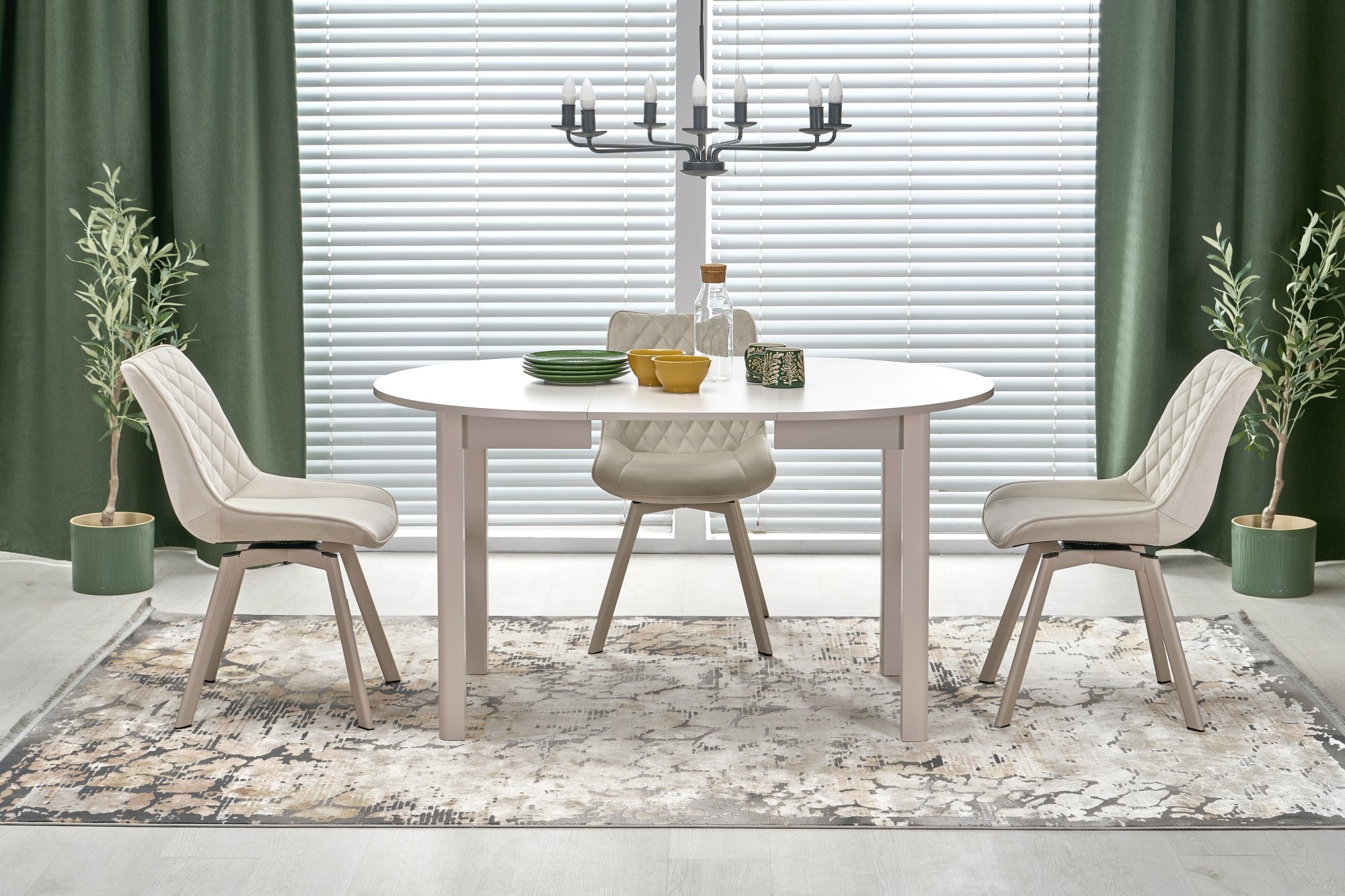 stół rozkładany, wymiary: 102-142/102/76 cm, materiał: płyta meblowa okleinowana / MDF okleinowany, kolor: blat – kaszmir, nogi – kaszmir