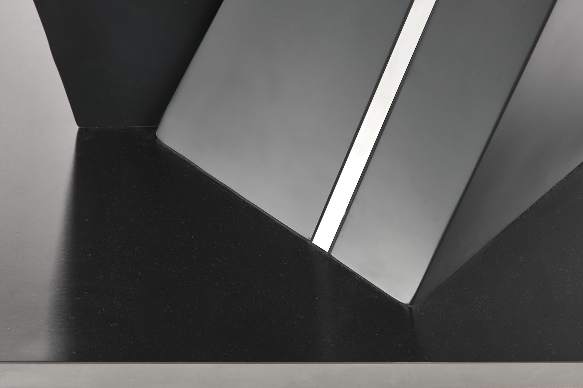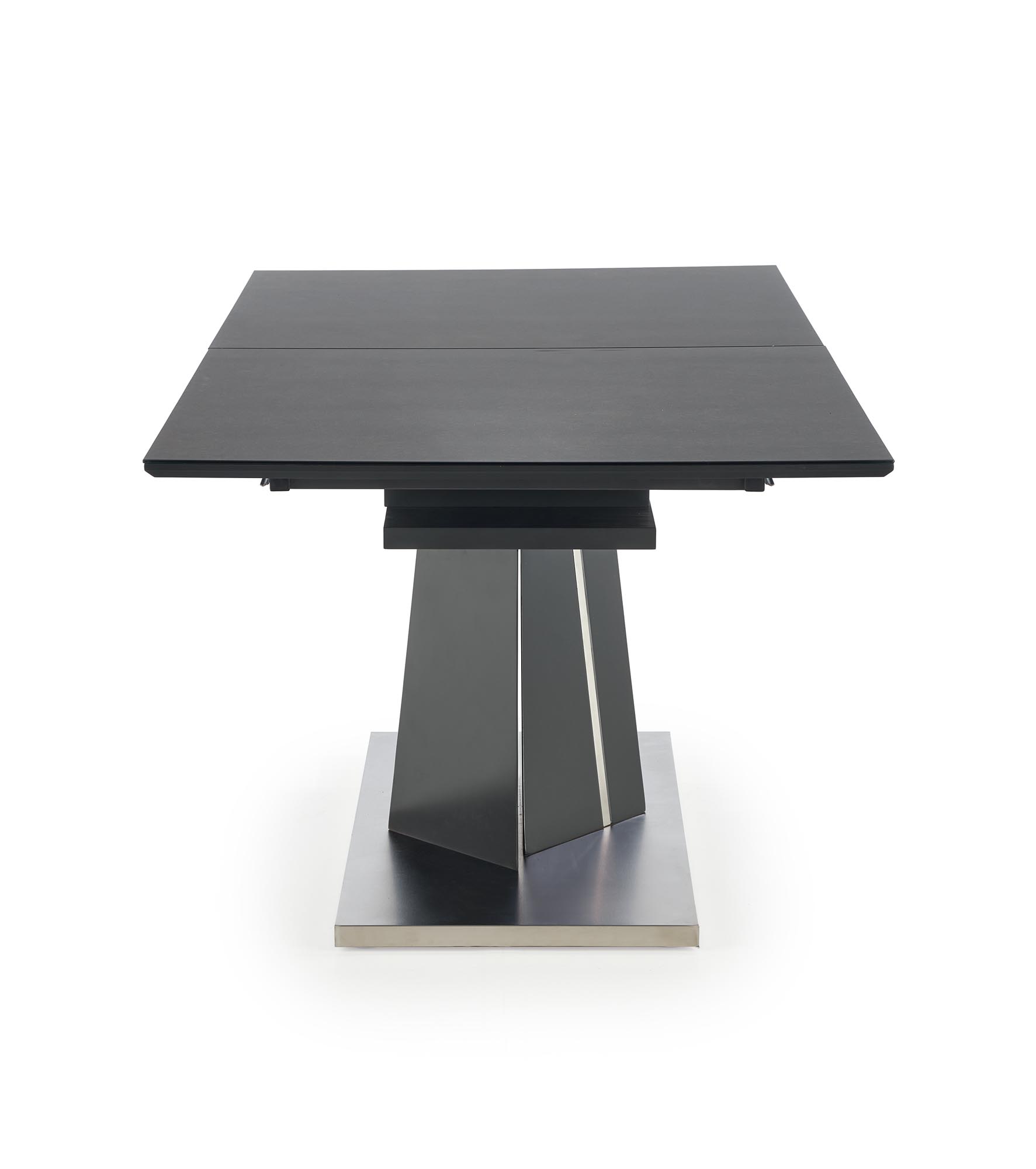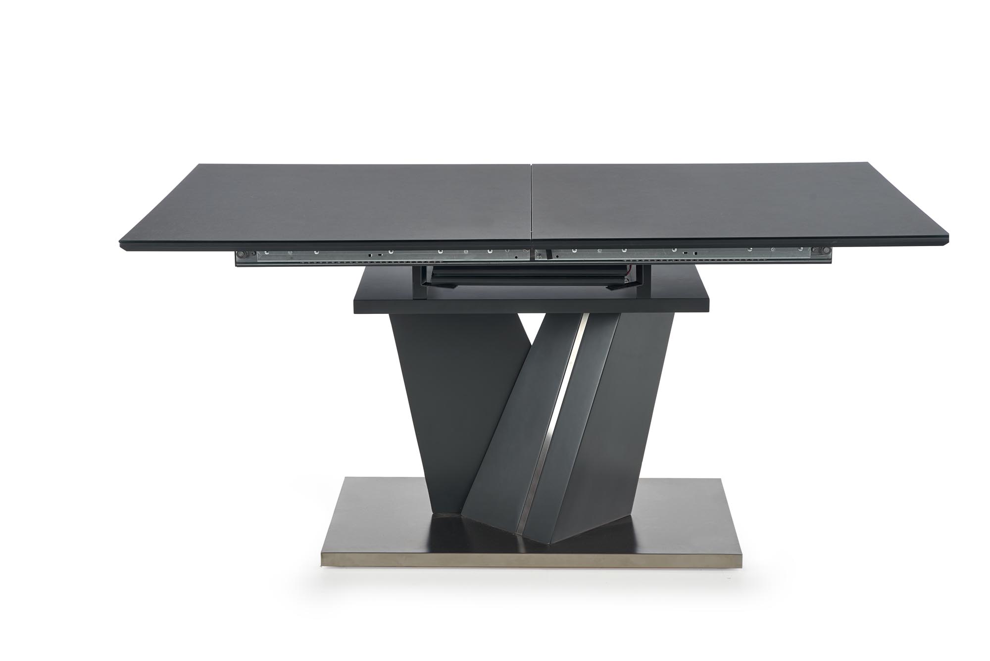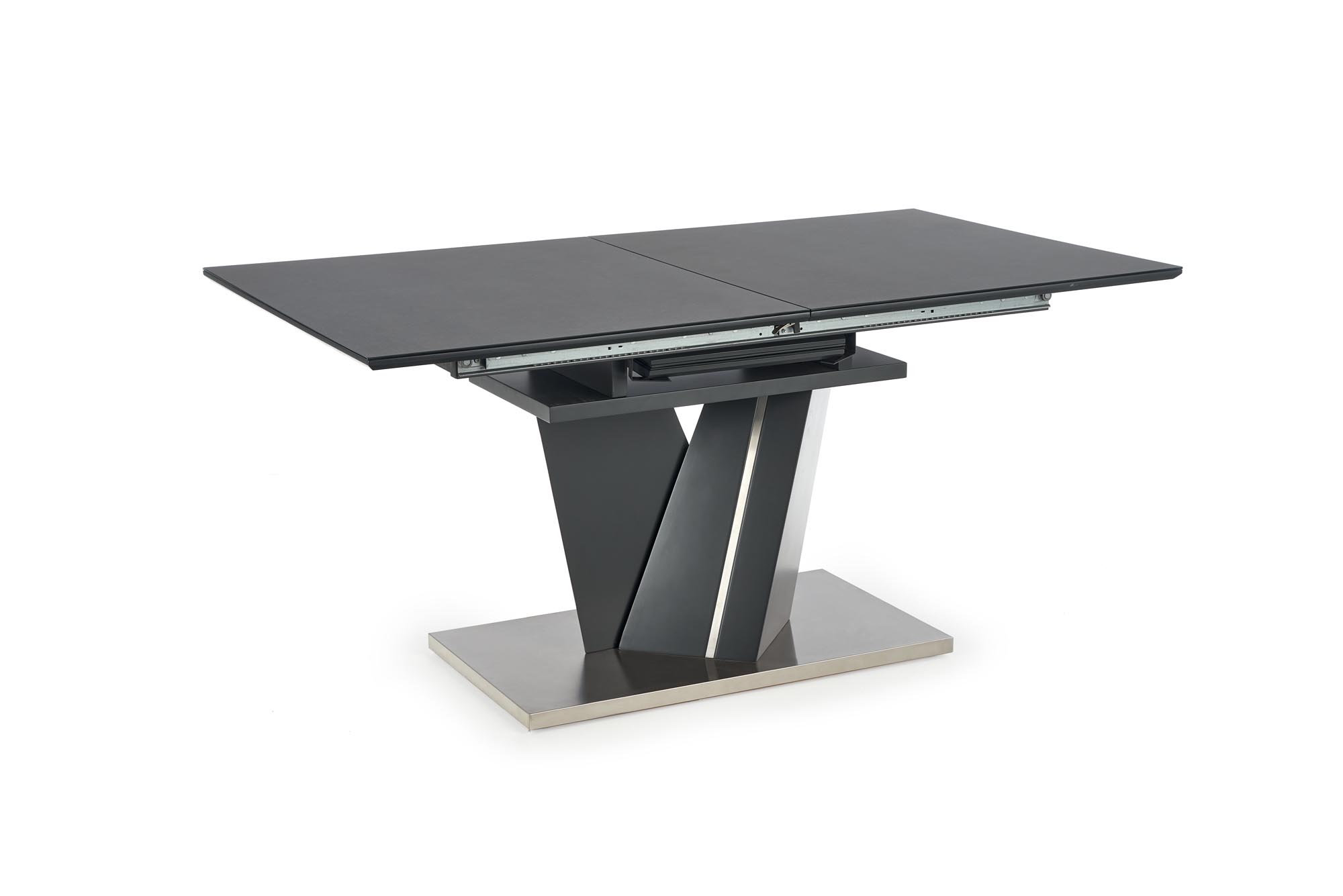 stół rozkładany, wymiary: 160-200/90/77 cm, materiał: szkło / MDF lakierowany / stal nierdzewna, kolor: blat – ciemny popiel, nogi – ciemny popiel