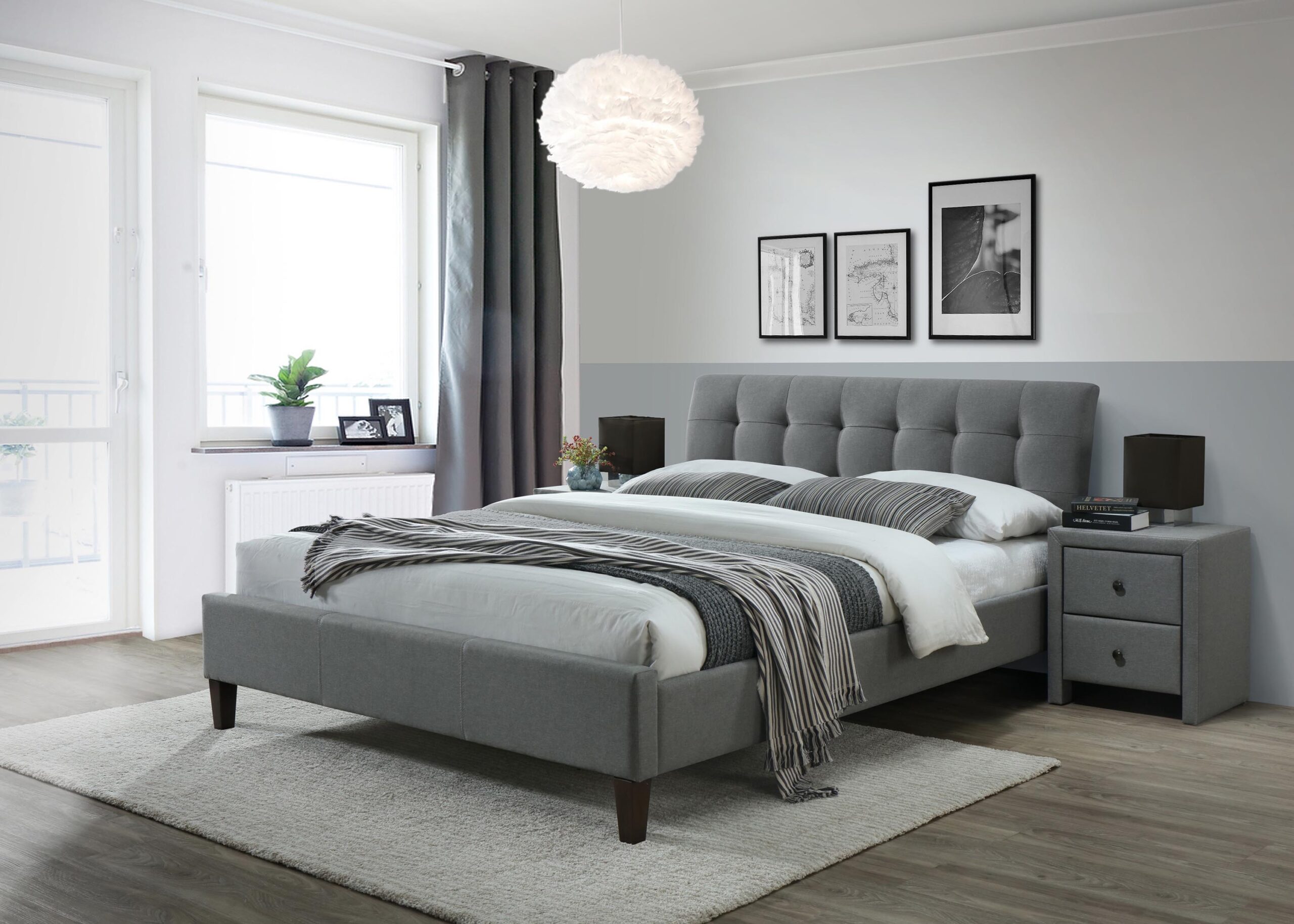 wymiary: 163/215/93 cm, wymiary dla materaca: 160/200 cm, materiał: tkanina / drewno lite, kolor: popielaty