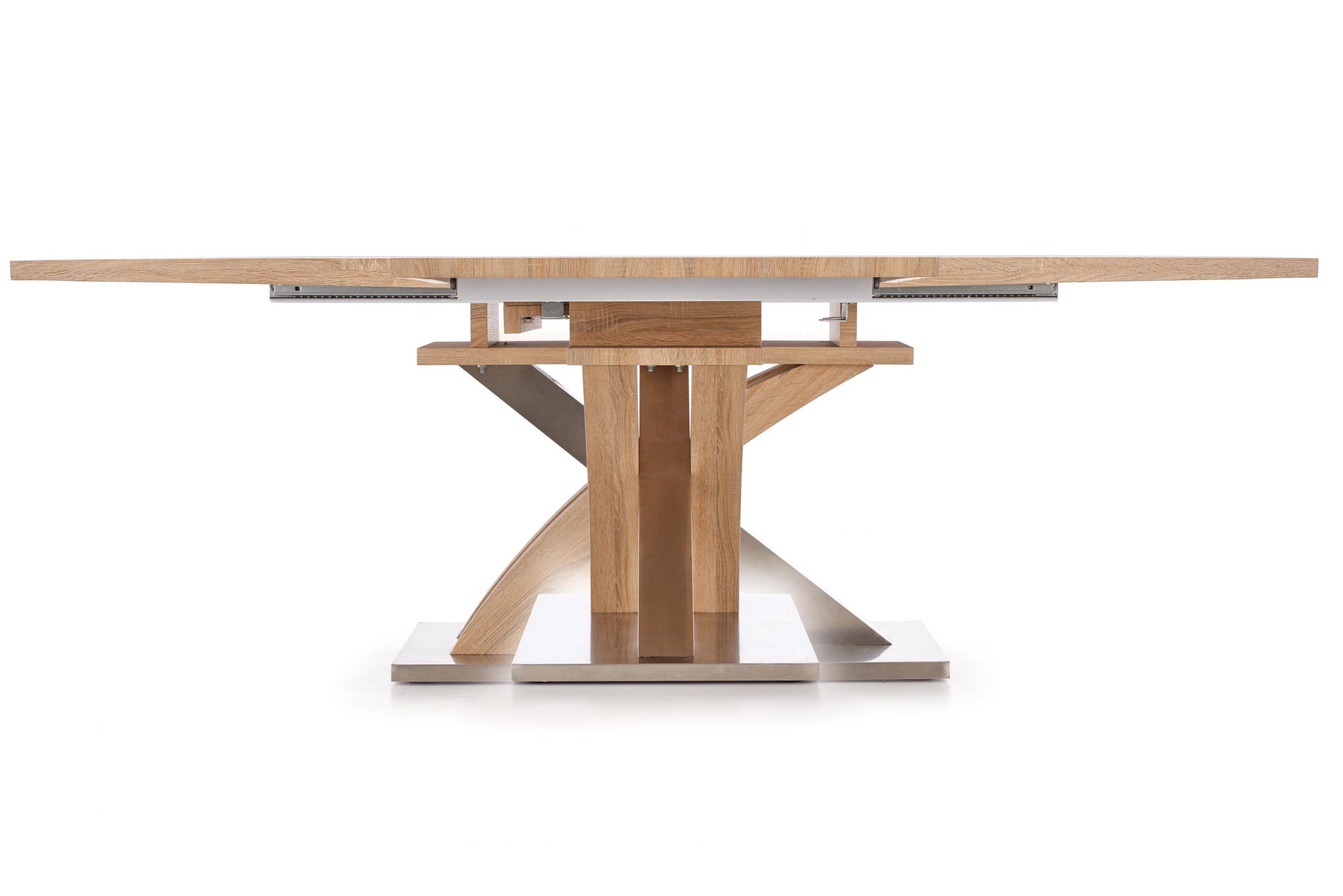 stół rozkładany, wymiary: 160÷220/90/77 cm, materiał: MDF laminowany / stal nierdzewna, kolor: dąb sonoma