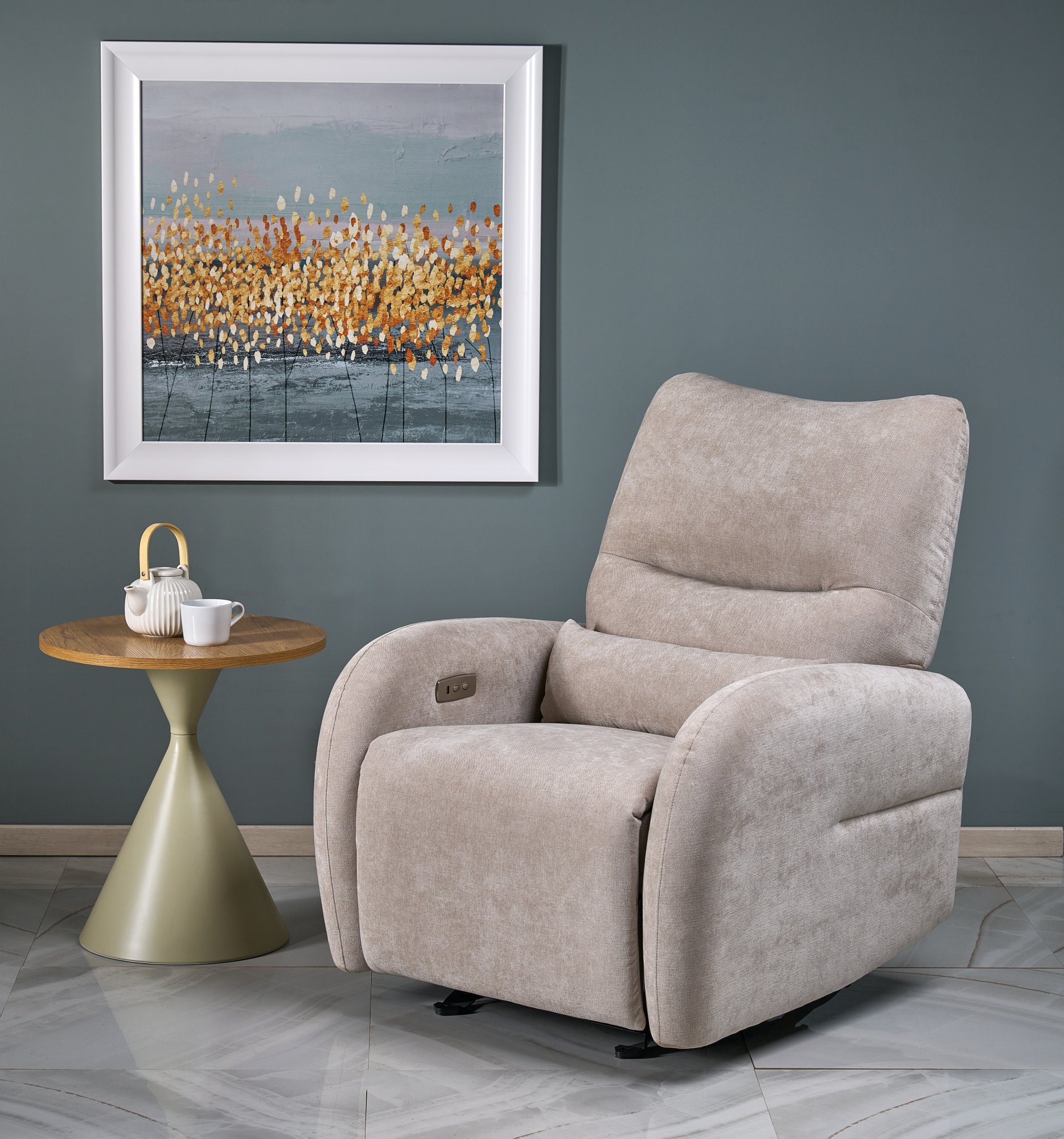 SAXON fotel wypoczynkowy z funkcją elektrycznego rozkładania / kołyski, beżowy