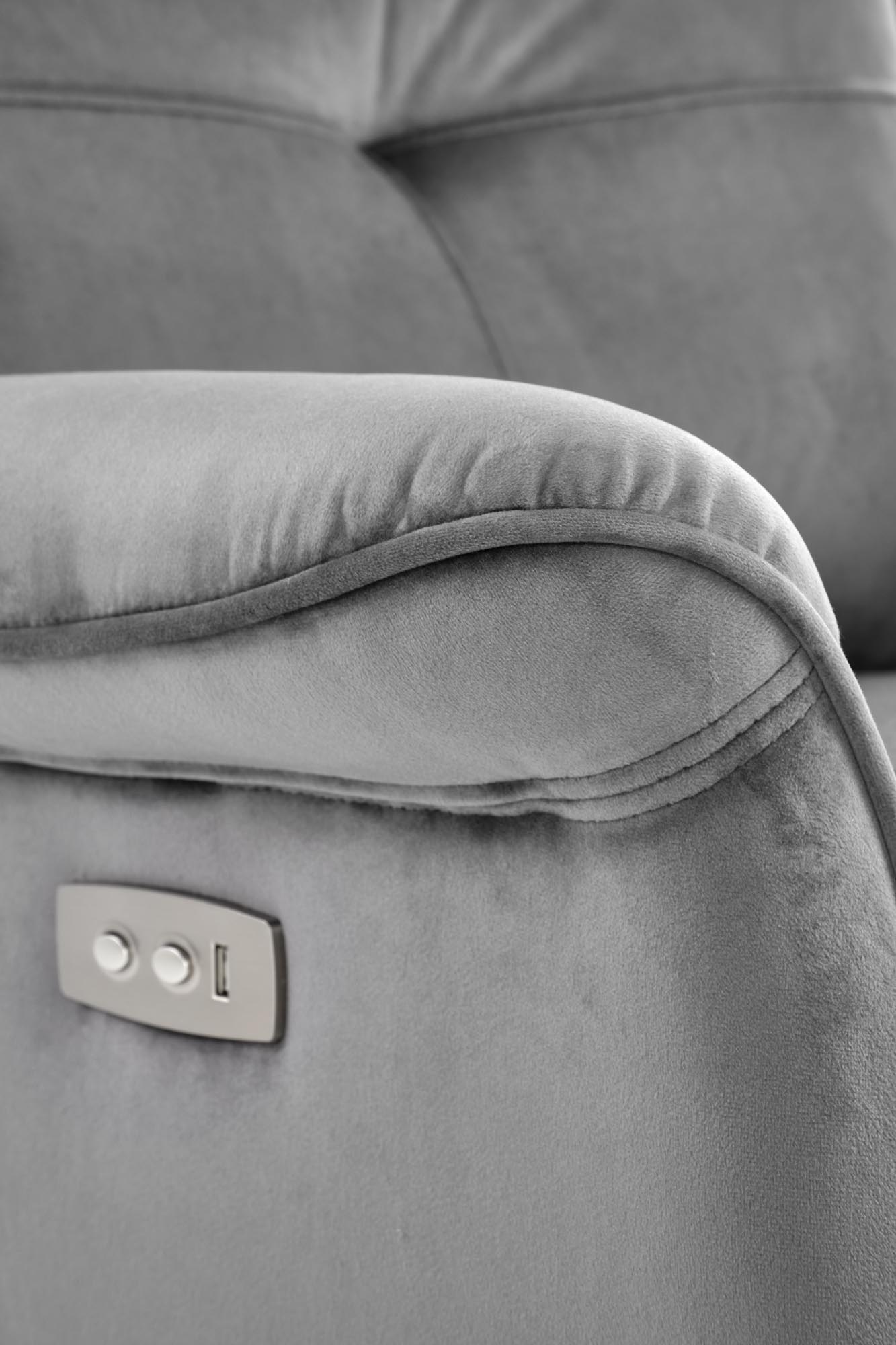wymiary: 80/90-170/92-108/46 cm, fotel z funkcją elektrycznego rozkładania / gniazdo USB, materiał: tkanina – velvet, kolor: popielaty – BLUVEL 14