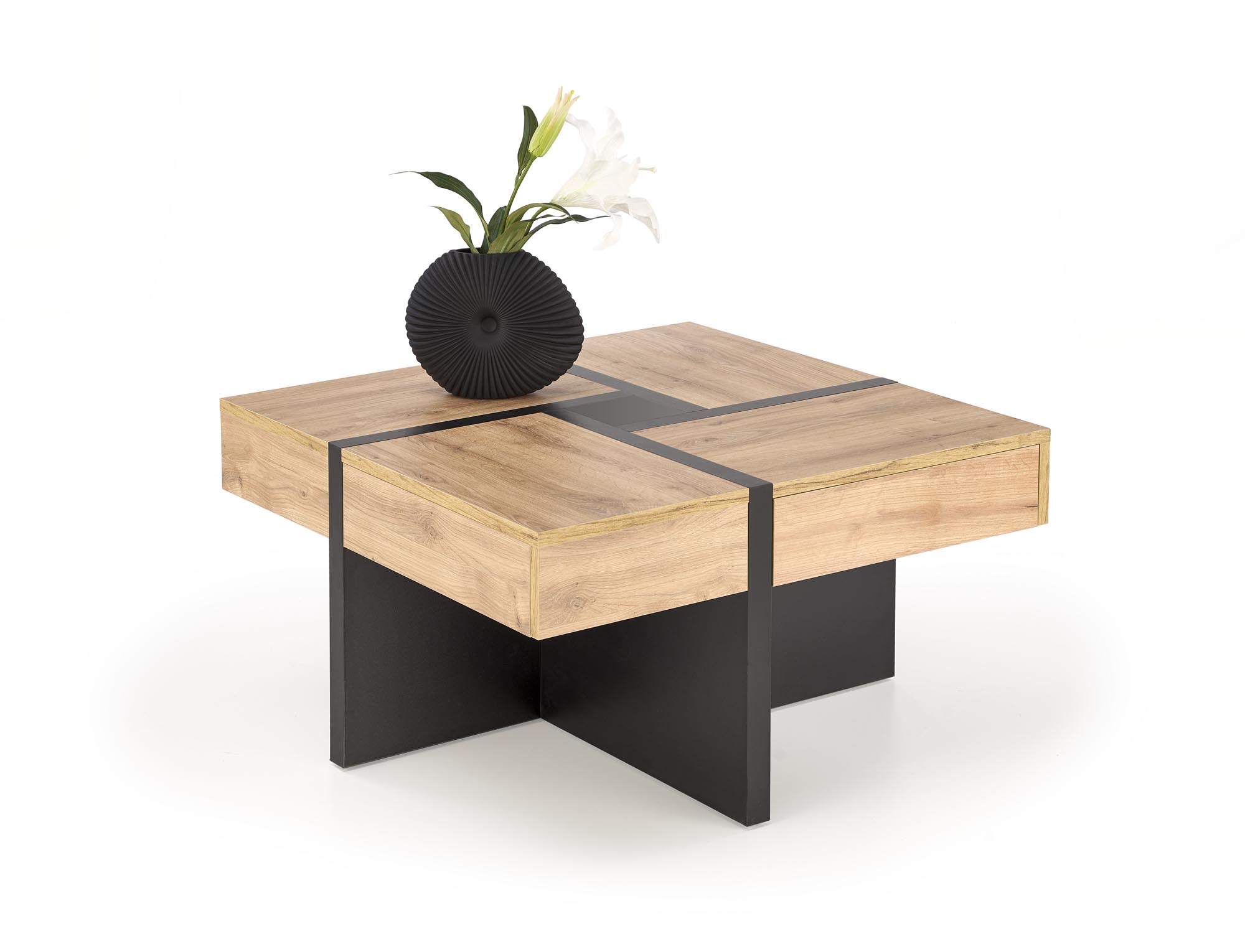 wymiary: 80/80/43 cm, materiał: płyta meblowa okleinowana, kolor: dąb craft – czarny mat