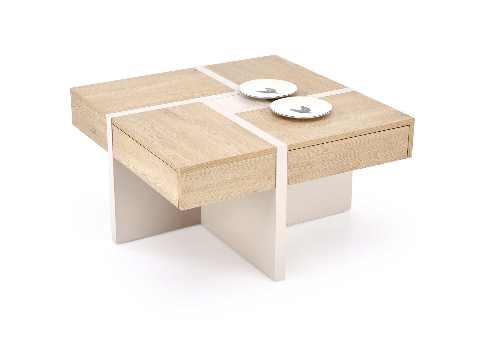 wymiary: 80/80/43 cm, materiał: płyta meblowa okleinowana, kolor: dąb cremona – kaszmir