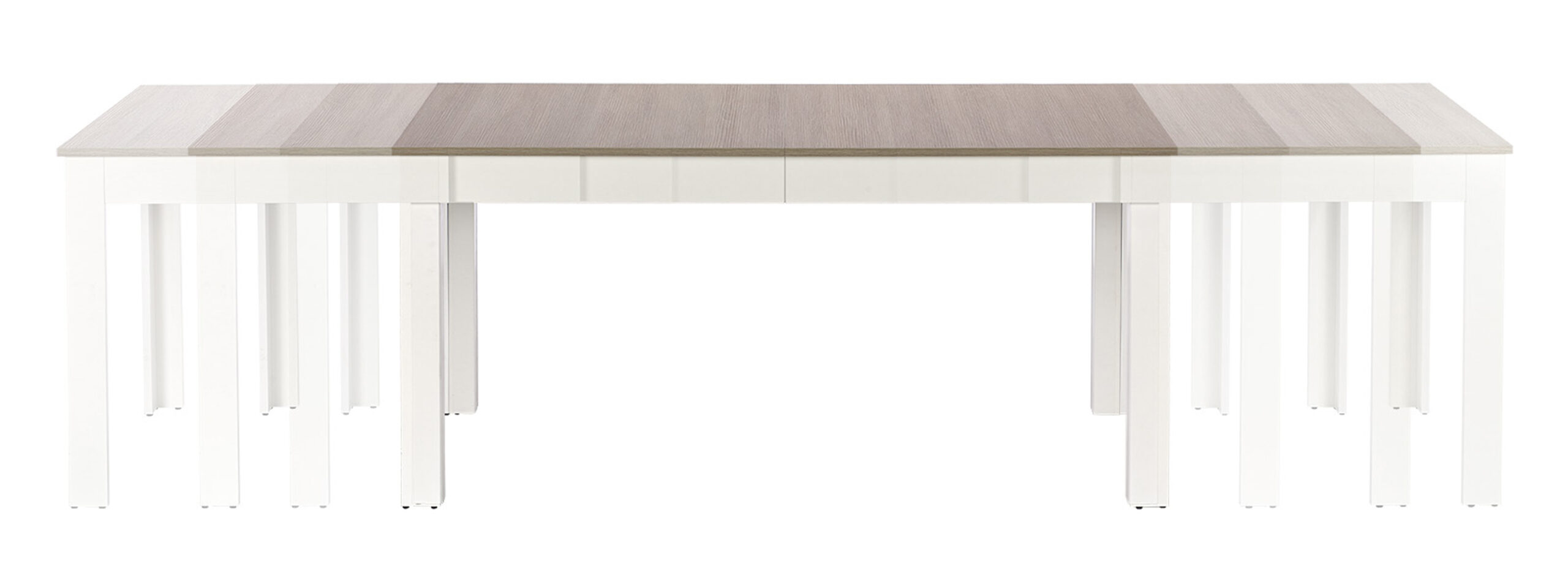 stół rozkładany, wymiary: 160÷300/90/76 cm, materiał: blat – płyta laminowana, na obrzeżach ABS, nogi – MDF laminowany, kolor: dąb sonoma / biały