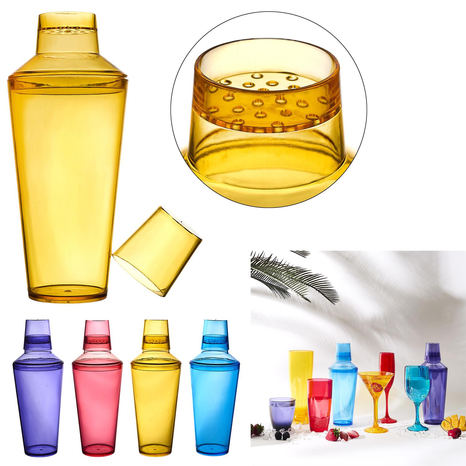 Shaker z kolekcji Sky to stylowe i funkcjonalne narzędzie barmańskie, które wyróżnia się nowoczesnym designem oraz żywą kolorystyką. Dzięki zastosowaniu transparentnego tworzywa, przygotowywanie koktajli staje się widowiskowym procesem. Shaker został wykonany z wysokiej jakości przezroczystego tworzywa sztucznego, co zapewnia mu lekkość i odporność na stłuczenia. Składa się z trzech dopasowanych części: głównego pojemnika, nasadki z wbudowanym sitkiem ułatwiającym przelewanie drinków bez lodu oraz szczelnego korka, który służy również jako miarka. Można myć w zmywarce